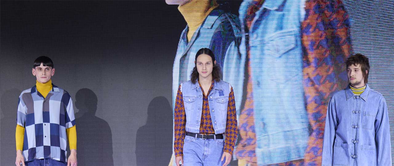 Das Opening mit den eleganten, aber extravaganten Langhaar-Looks beeindruckte sofort. Danach katapultierte dm mit ihren Herrenstyles die Messebesucher*innen in die späten Achtziger, Anfang Neunziger Jahre zurück. Retro, aber cool mit Vokuhila, Schnauzer, Glam Rock Mähne und einem „Feather Cut“ à la Rod Stewart wurden die Styles in die Gegenwart transferiert.