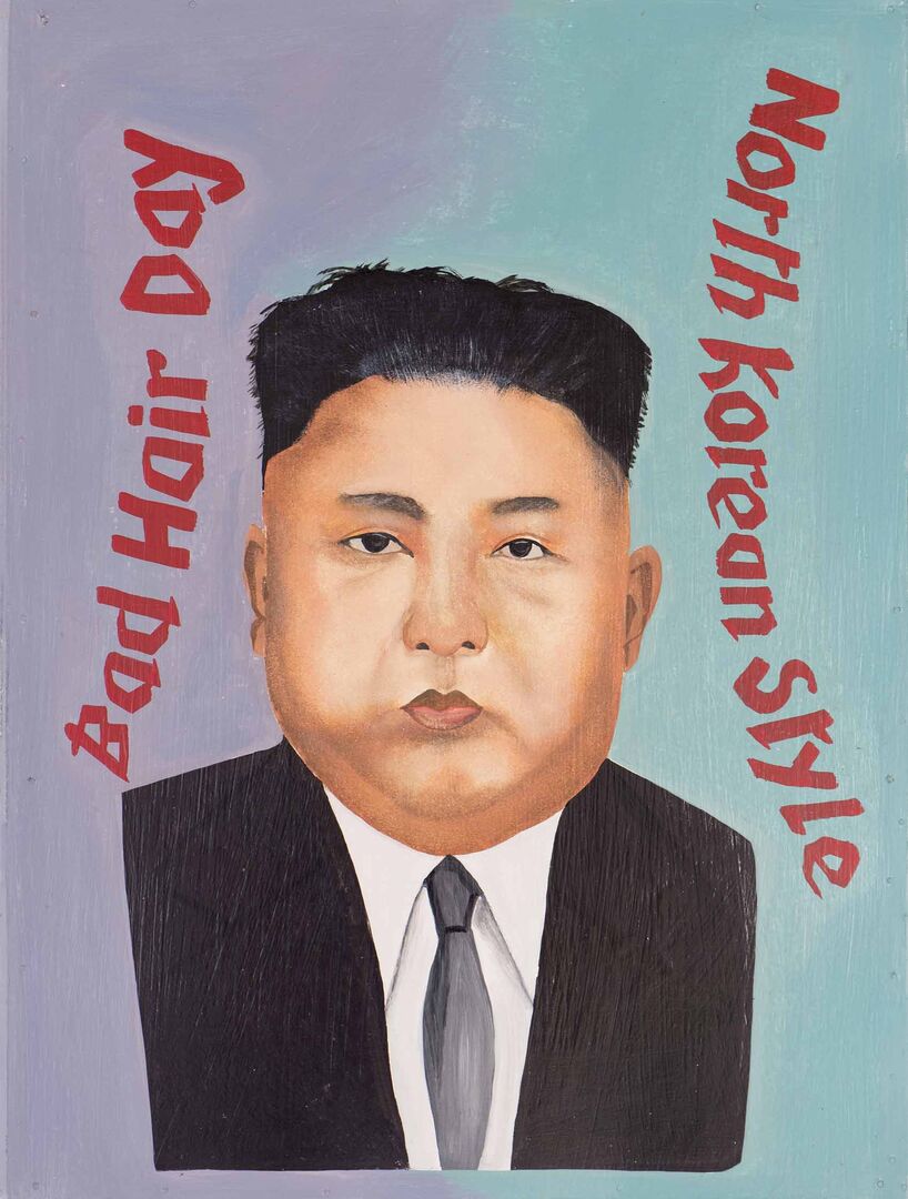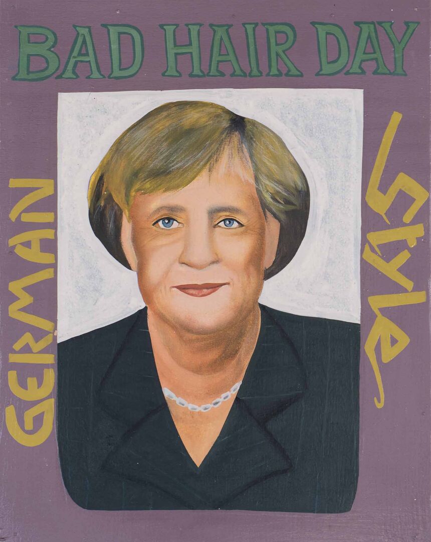 Die Inspiration zu seiner "Bad Hair Day" Reihe fand er in Benin, wo die Werbeschilder von Beautysalons traditionell mit der Hand gemalt sind: