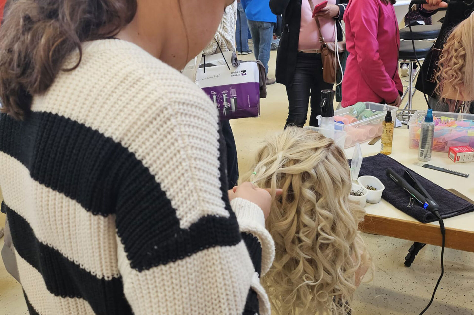 So kamen an diesen drei Tagen Glätteisen und Lockenstab oder auch die altbewährten Wasserwellenwickler zum Einsatz. Fingerfertigkeit war gefragt und die Interessierten konnten gleich selbst Hand anlegen und ihre Talente unter Beweis stellen.