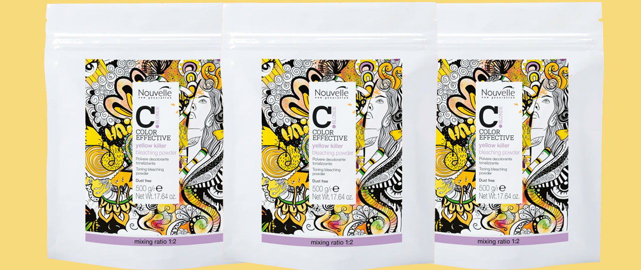 Nouvelle Yellow Killer Bleaching Powder von Hair Haus ist ein Blondierpulver mit abmattierendem Effekt. Während dem Aufhellen wird der gelbe Unterton entfernt, um den Ton so klar wie möglich zu erhalten.