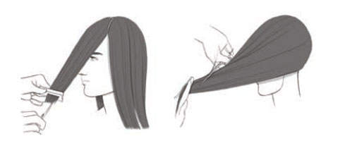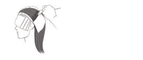 Teilen Sie den Konturenbereich ca. 2-3 cm hinter der Kontur (abhängig von der Haardichte) ab. Ziehen Sie nun einen vertikalen und einen horizontalen Scheitel, um den Kopf in 4 Sektionen zu teilen.