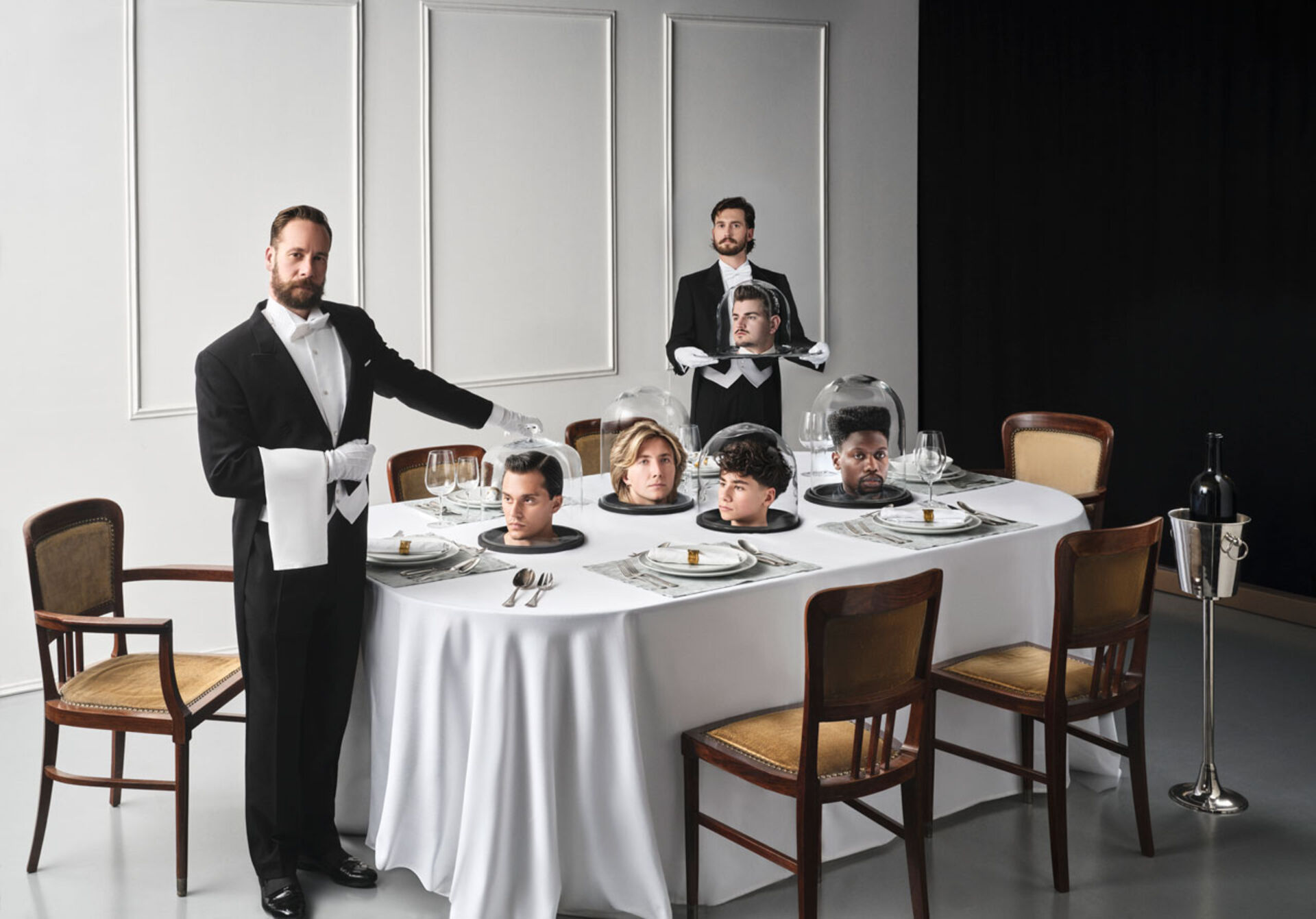 Wer hier an Marco Ferreri's Filmklassiker "Das große Fressen" denkt, liegt richtig! Duke Johns’ Barbershop hebt mit seiner neuesten Kampagne Friseurkunst auf ein Niveau optischer und stilistischer Raffinesse – präsentiert als surreales Abendessen, bei dem Köpfe wie kulinarische Meisterwerke zur Schau gestellt werden. In enger Zusammenarbeit mit Fotograf Stefan Leitner ist es Alexander Prasser, alias "Duke" gelungen, seine Vision von Präzision und Handwerkskunst einzufangen. Kampagne greift das Thema „Haute Cuisine“ auf und verwandelt den Friseursalon in eine Bühne für raffinierte Ästhetik.