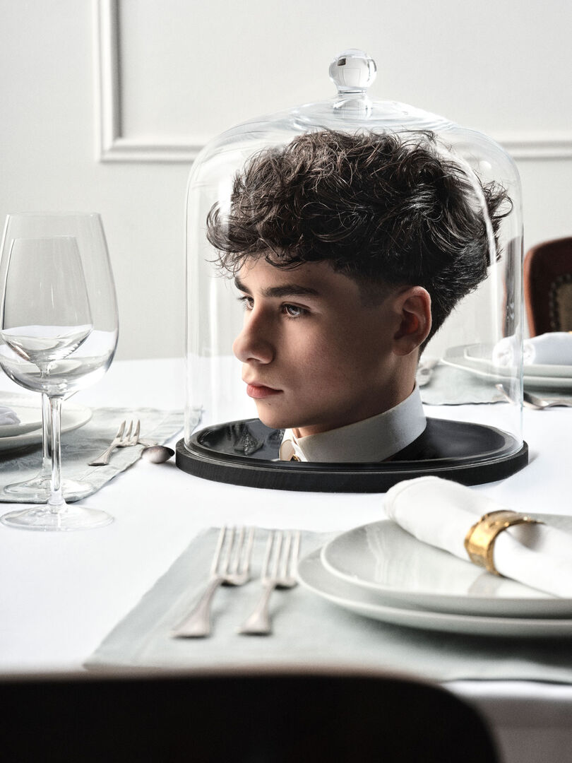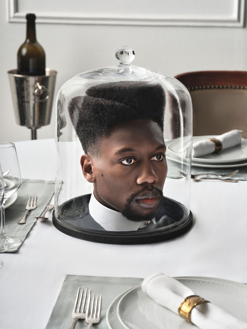 Haare als „Hauptgericht“. Die Kampagne macht jeden Haarschnitt zu einem mutigen Statement. Auf den Fotos sind Models mit makellosen Frisuren zu sehen, deren Köpfe unter Glaskuppeln serviert werden – wie Gourmet-Köstlichkeiten, die darauf warten, entdeckt zu werden.