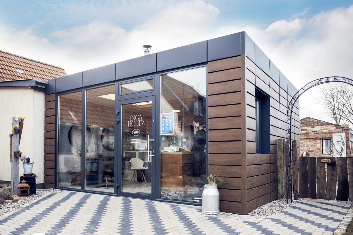 Inga Holtz hat ihren Container mit Herz mithilfe von Partner, Freunden und Familie direkt in den Garten ihres Hauses integriert. Dabei spart sie Mietkosten und natürlich auch in puncto Arbeitsweg.