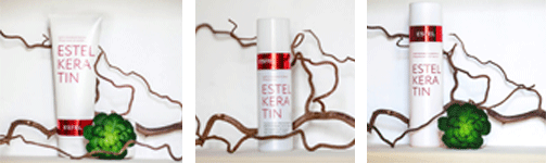 Als Anwendung für Zuhause gibt es Estel Keratin, um den Keratin-Effekt länger zu erhalten. Shampoo, Maske und Pflegespray können auch ohne die Salonbehandlung für leicht geschädigtes Haar verwendet werden.