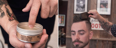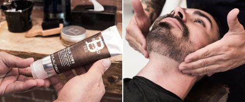 Step 4| Für Pflege und Feuchtigkeit Balm Down auf das Gesicht auftragen. Eine winzige Menge Mo Rider mit der Daumenspitze entnehmen und damit den Moustache formen und kontrollieren.