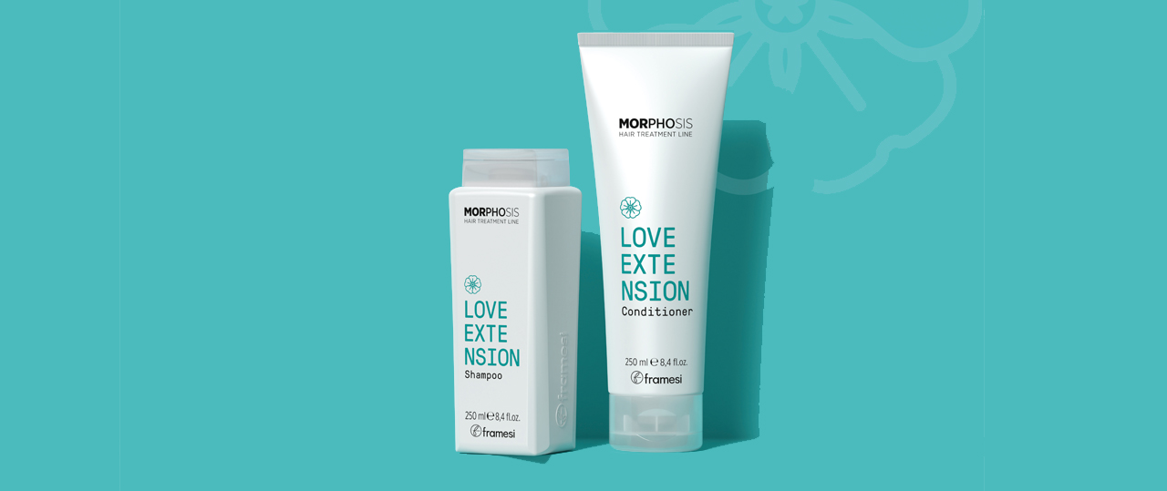 Extensions sind eine äußert professionelle Dienstleistung im Salon. Morphosis Love Extensions Shampoo und Conditioner von Framesi bewahren die Schönheit der eingesetzten Strähnen und verleihen dem gesamten Haar leichte Kämmbarkeit und natürliches Volumen. Framesi gibt es bei fpe im Vertrieb.