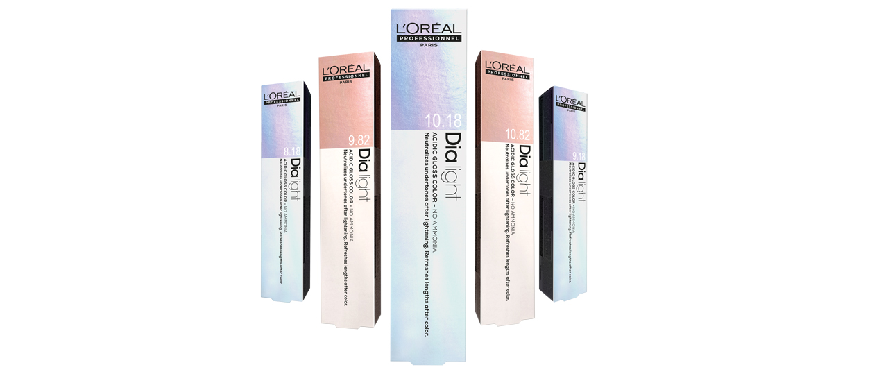 Die neue Balayage-Veredelung von L'Oréal Professionnel Paris basiert auf der sogenannten Double Face Framing-Technik. Zur Wahl stehen fünf verschiedene Dia light Pearl Nuancen - zwei irisierenden und drei kühlen Beigetöne.