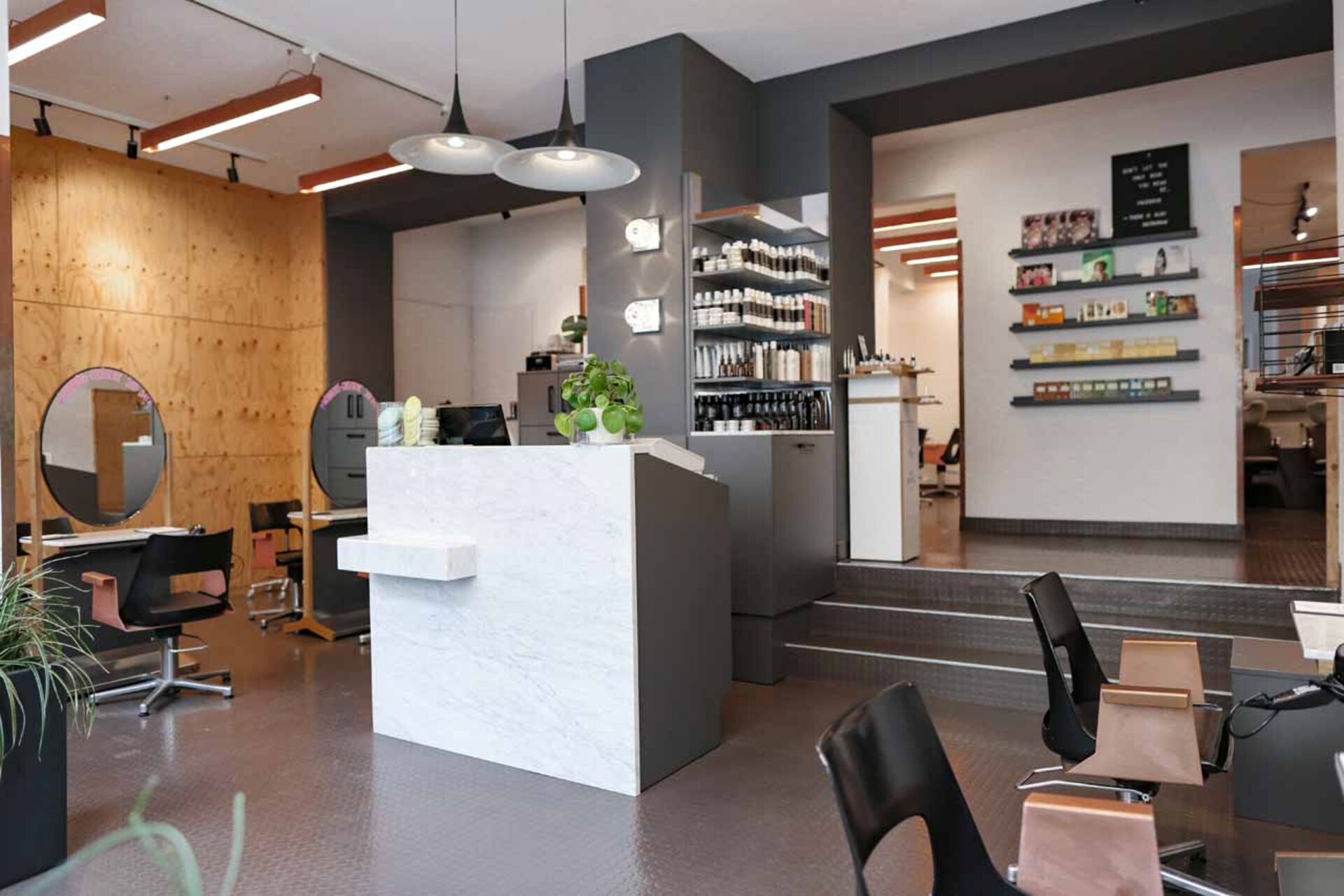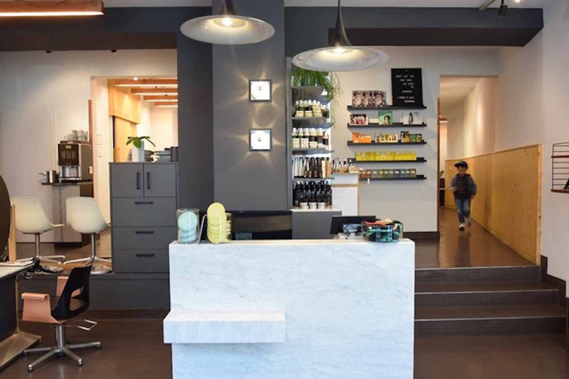 Der Salon hat einen integrierten Eco-Produktshop, hier werden ausgewählte organischen Haarpflege Produkte angeboten.