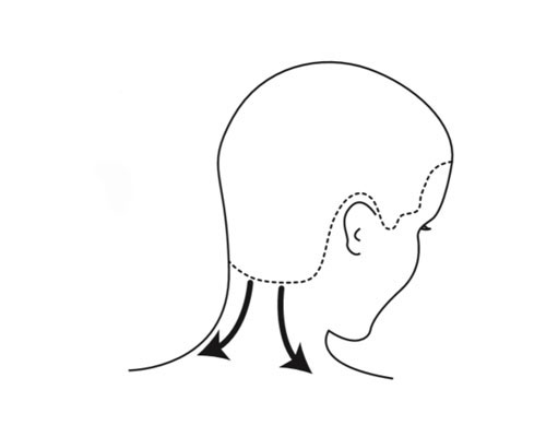 Step 2| Links und rechts abwechselnd mit einer Hand unterhalb des Okzipital Knochens neben der Halswirbelsäule abwärts streichen