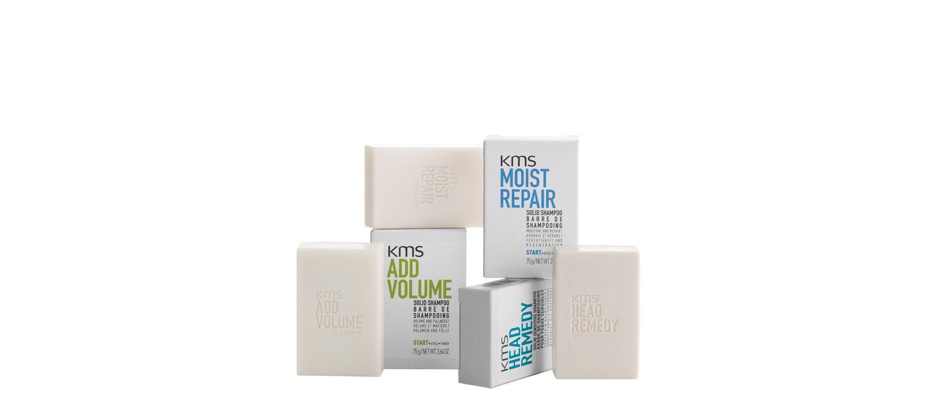 Die Solid Shampoos sind frei von Sulfaten, Silikonen, Alkohol, synthetischen Farbstoffen oder Inhaltsstoffen tierischen Ursprungs. Mit dem enthaltenen KMS AHA Structure Complex sollen innere wie äußere Haarstruktur verbessert werden. Die Produkte sind mit der KMS Start. Style. Finish. Produktkategorisierung kompatibel und können auch mit allen KMS Leave-In Produkten kombiniert werden.