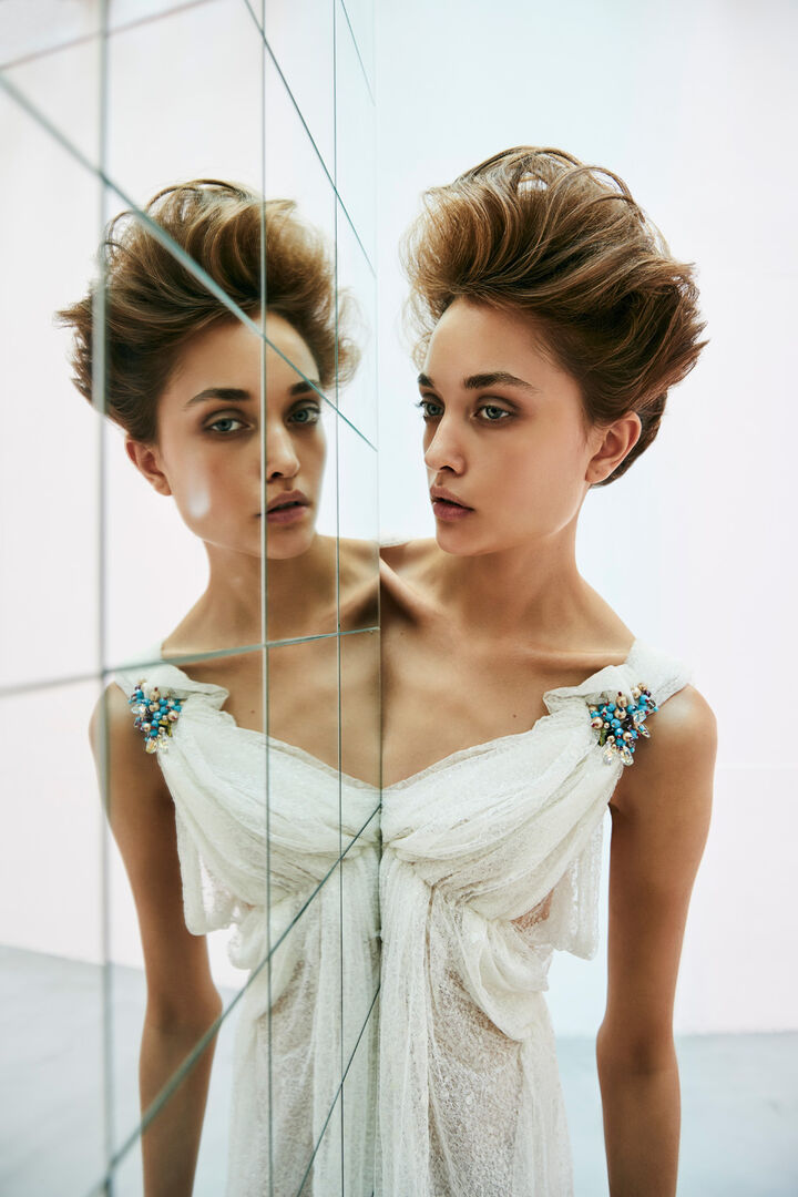 Die Kollektion "Mirror, Mirror..." wurde von Hannes Steinmetz für die festlichen Zeiten des Jahres geschaffen. Verführerisch, selbstbewusst, sinnlich, hingebungsvoll und gleichzeitig zurückhaltend, zerbrechlich und geheimnisvoll wirken die femininen Hochsteck-Kreationen. Die Looks sind eindeutig frisiert und gestylt, dennoch weder bieder, noch streng. Die Form ist – ganz den aktuellen Fashion-Trends entsprechend – wellig und bewegt.