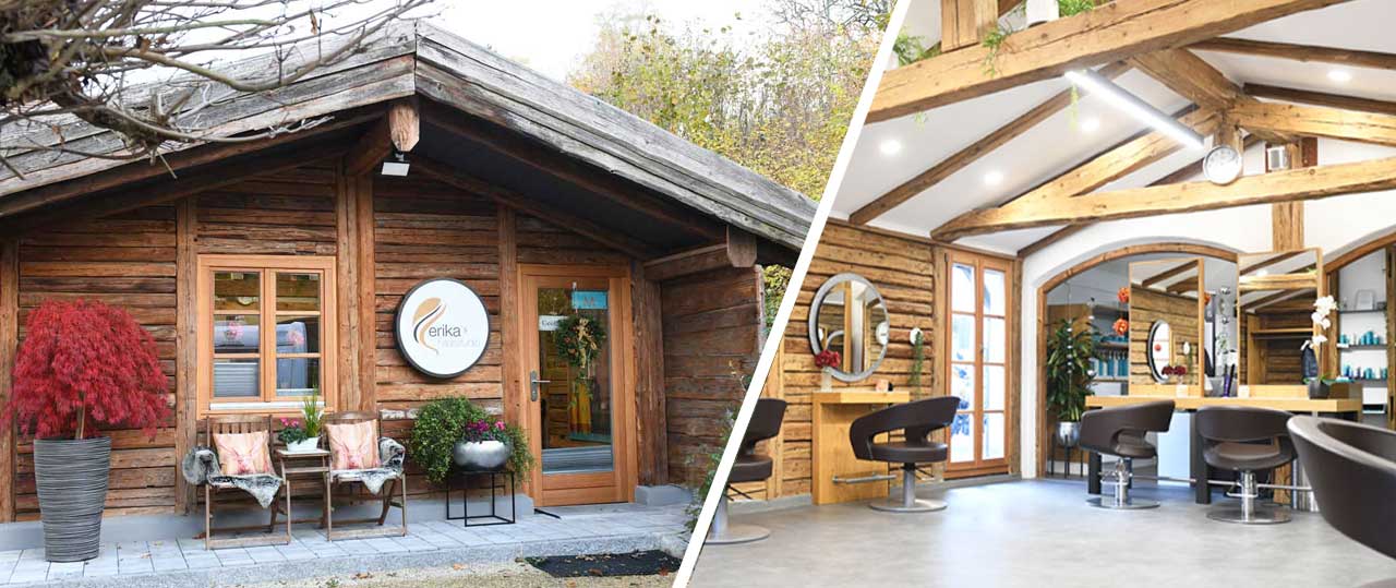In Altdorf bei Landshut hat sich Erika Ploum für einen speziellen Salon-Stil entschieden. Was auf den ersten Blick nach Almhütte aussieht, ist ein hochwertiges Salon-Konzept aus Holz mit Überraschungseffekt.
