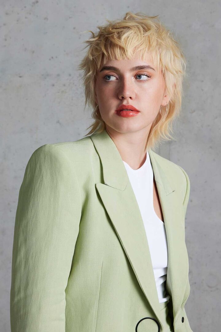 - Blond Pur: Diese Trendwelt setzt einen blonden Mullet für Modebewusste und einen sehr femininen Langhaarlook mit weich ineinanderfließenden Blondnuancen in Szene.