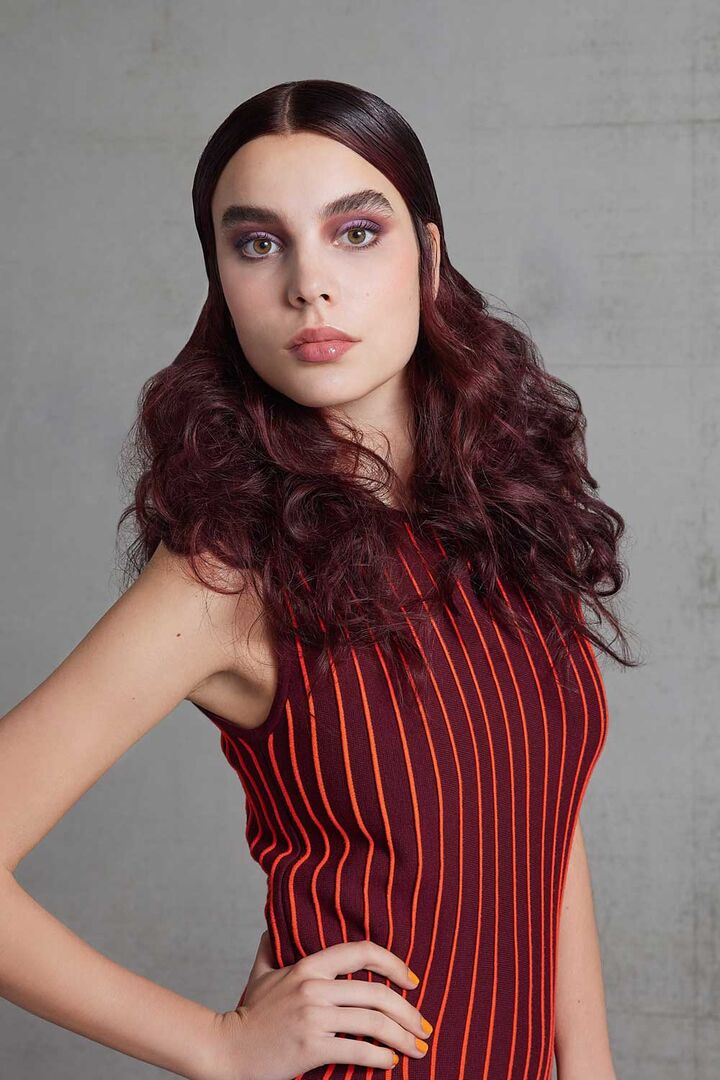 - Passion Pur: Hier schmeicheln raffiniert gesetzte Paintingtechniken (Money Pieces) einem Longbob in intensivem Kupferrot. Ein trendiger Langhaarlook mit Curtain Bangs leuchtet in purpurroten Farbnuancen.
