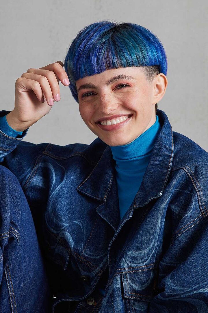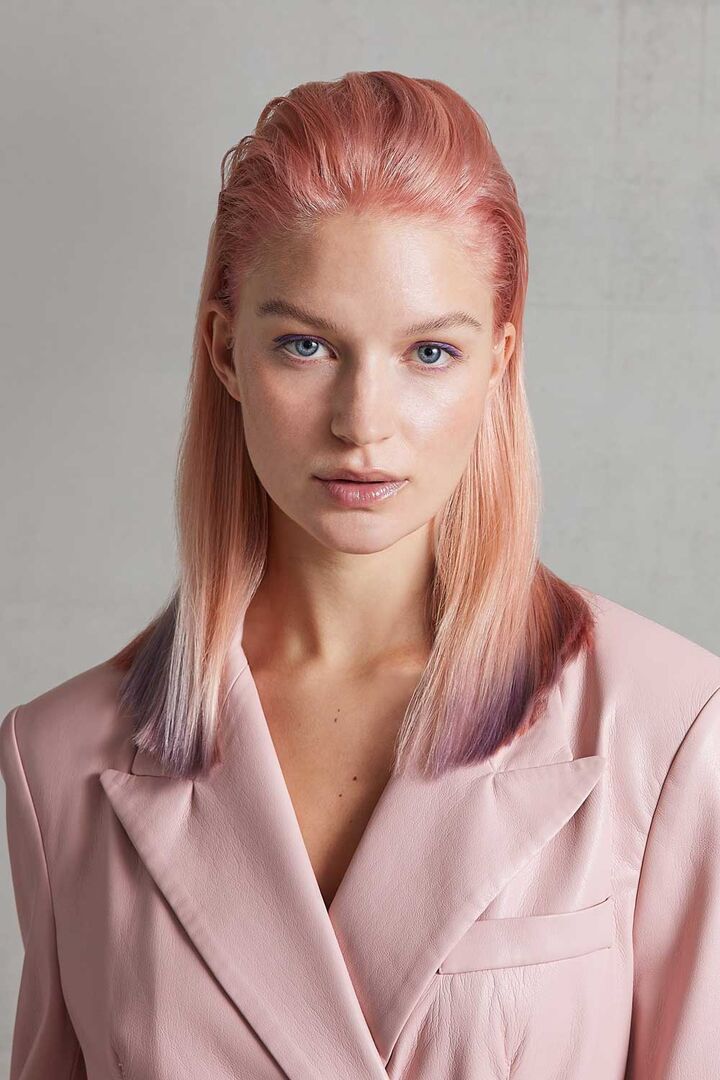 - Fantasie Pur: Ein progressiver Haarschnitt in satten Blautönen und ein Longbob im irisierenden Rosé-Look mit auslaufenden Lilac-Effekten greifen die aktuellen TikTok-Trends auf.