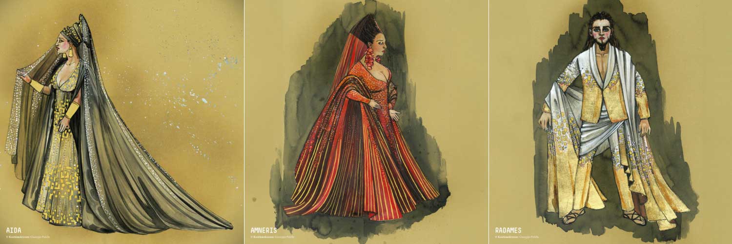 In der Regie und im majestätischen Bühnenbild von Thaddeus Strassberger erwacht das alte Ägypten zur Zeit der Pharaonen mit seiner Hochkultur zu neuem Leben und somit auch Mode, Schmuck, Perücken und Kosmetik der alten Ägypterinnen. Die Kostüme stammen vom italienischen Künstler und Preisträger Giuseppe Palella, die er in der offiziellen Pressekonferenz am 14.11.2023 in Wien präsentierte – hier darf man sich auf Exotisches und Prachtvolles einstellen!