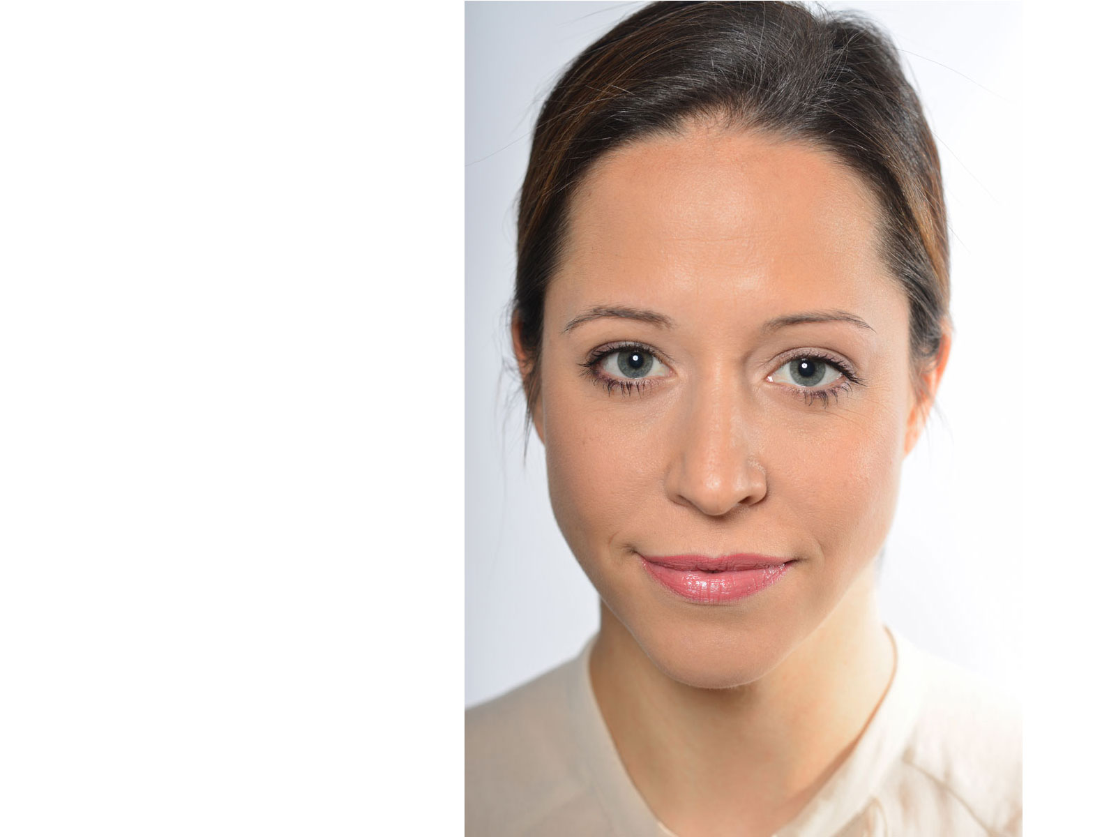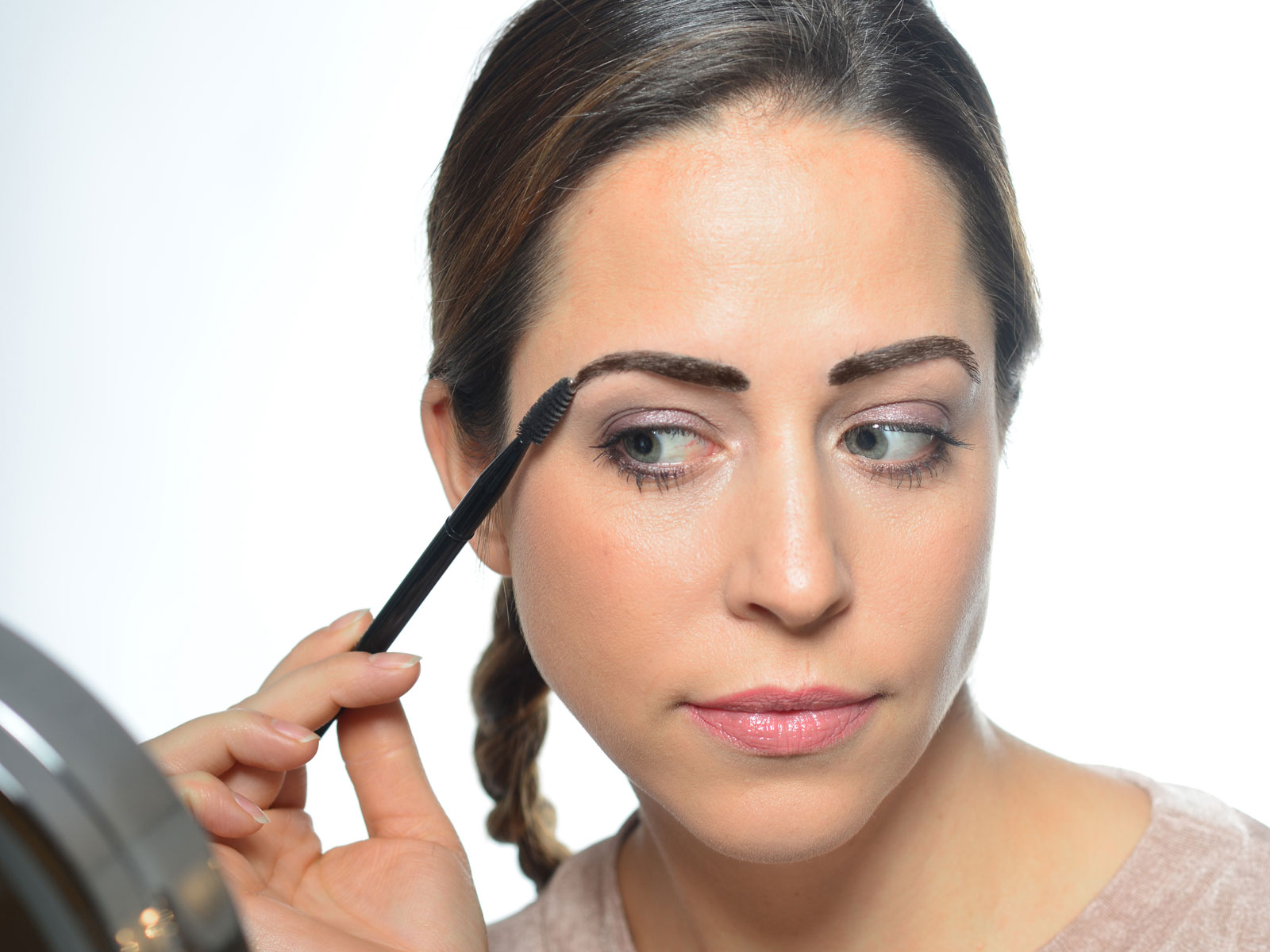 Die Augenbraue mit den Fingerspitzen gleichmäßig festdrücken. Gegebenenfalls überschüssigen Kleber an den Seiten mit einem Wattestäbchen wegnehmen.