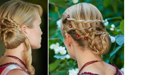 Step 4| Das Ende der Zöpfe legen Sie kreativ über den Haarknoten.