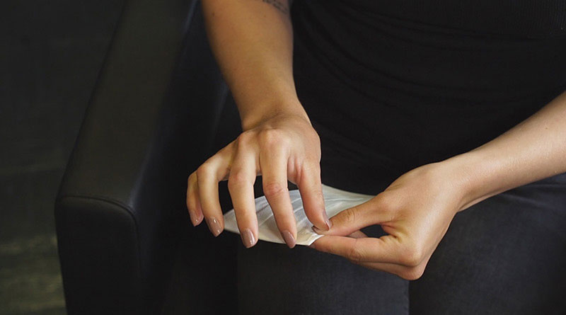 Die selbstklebenden Masken mit medizinisch getesteten und hypoallergenen Klebebändern können von den Kunden selbst angelegt und händisch angepasst werden, sodass Maske nicht verrutscht. Dazu werden nach dem Händedesinfizieren die Klebestreifen entfernt und die Ober und Unterkante der Maske entsprechend im Gesicht fixiert.