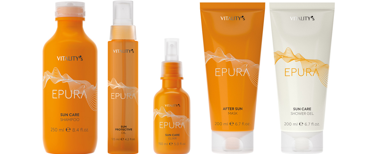 Vitality´s Epura Sun von Hair Haus schützt das Haar während des Sommerurlaubs vor schädlichen UV-Strahlen. Die Pflegeserie besteht aus einem Shampoo, einer Haarmaske, einem Duschgel, einem Sonnenpflege-Elixir und einem Sonnenschutzöl.