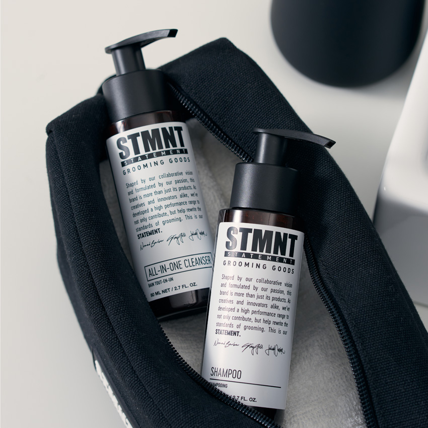 Die Travel Sizes von STMNT Grooming Goods für Männer eignen sich perfekt für ein unkompliziertes Styling auf Reisen.