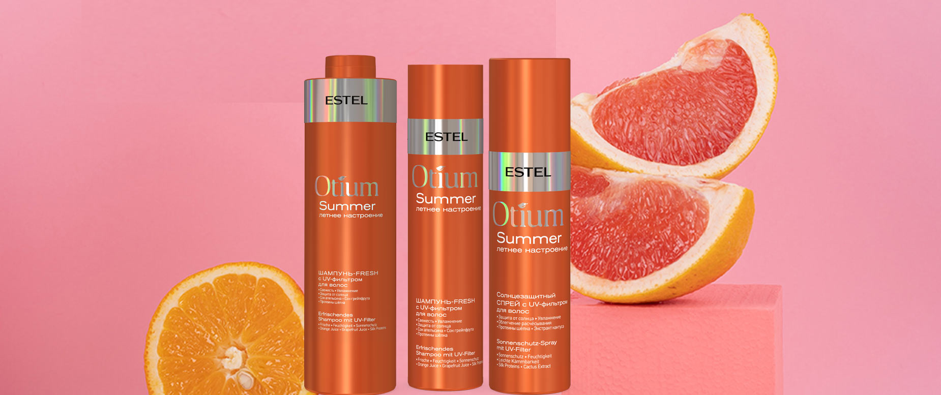 Sonnenschutz füt Haut und Haar: Shampoo, Spray und Tonikum von Estel bewahren vor Pigmentverlust und Trockenheit. Damit die Pflege auch im Flieger transportiert werden kann, wird zusätzlich ein Reiseset angeboten.
