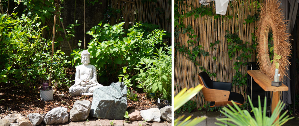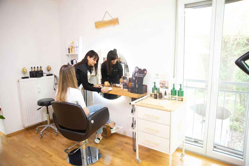 Helle Holzmöbel, weiße Wände und exotische Details schaffen ein Ambiente, das nicht nur optisch begeistert. Das Highlight: der Außenbereich mit eigenem Stylingplatz, einer Lounge-Ecke, echtem Sand und einem Teich. Auch die separaten Stylingräume und der optionale Silent-Service bieten gelassene Ruheoasen.