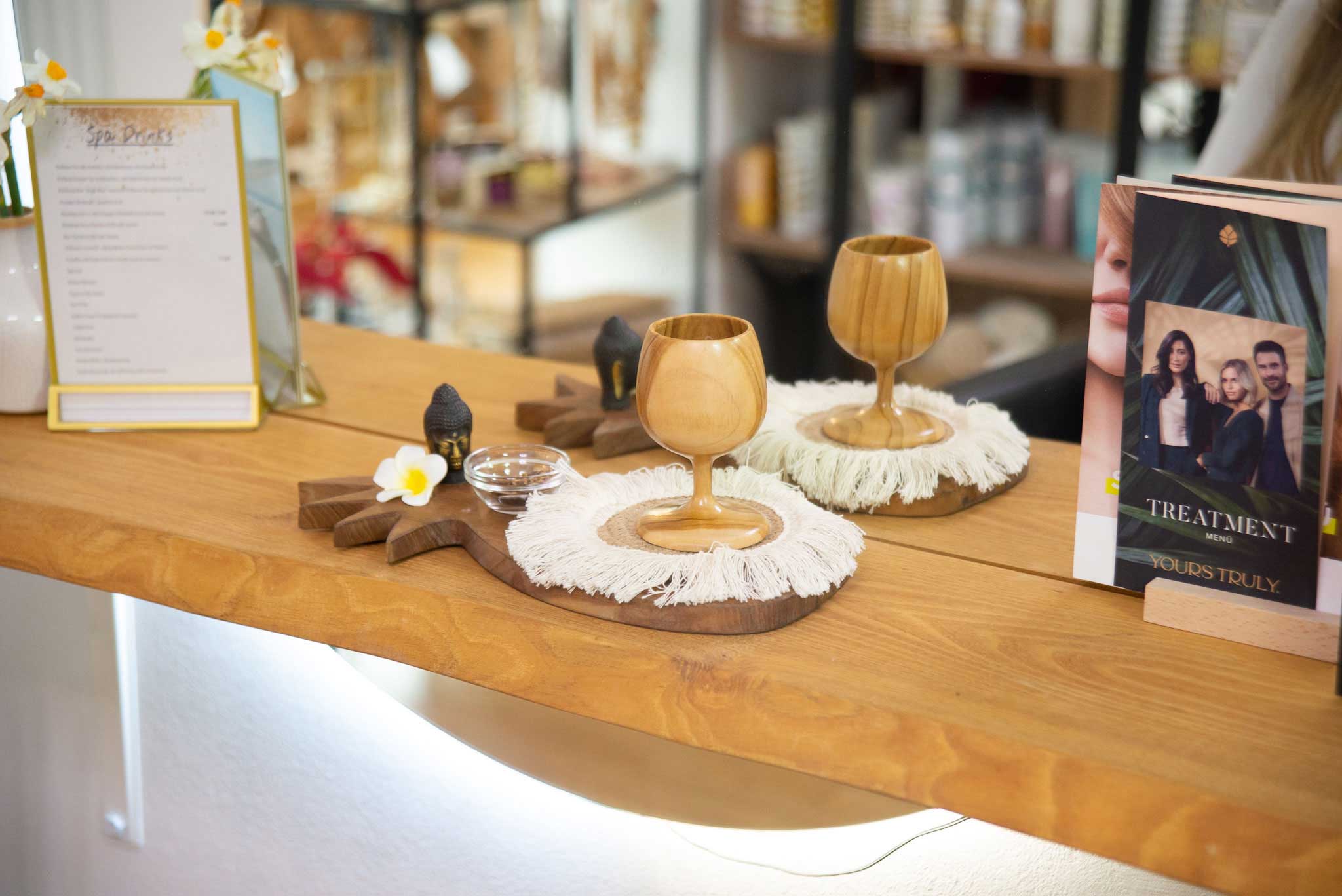 Schon das Begrüßungsritual im Yours Truly Partnersalon The Bridal Spa ist einzigartig: Jeder Kunde wird in seinem persönlichen Stylingraum mit einem balinesischen Wellness-Tee empfangen. „Meine Gäste sollen sich wie im Urlaub fühlen. Alles ist auf Entspannung ausgerichtet“, erklärt Inhaberin Sandy.