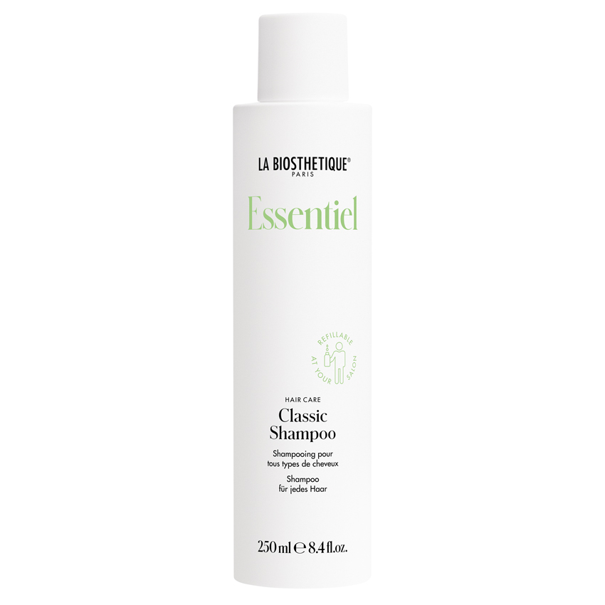 Waschaktive Substanzen, unter anderem auf Basis von natürlichem Kokosöl, reinigen Haare und Kopfhaut besonders sanft, pflanzliches Betain versorgt sie mit Feuchtigkeit. Nach der Wäsche ist das Haar mühelos kämmbar, spürbar gepflegt und duftet zart nach Früchten, Blüten und einem Hauch von Sandelholz. Mit dem neuen Refill–System für das Essentiel Classic Shampoo werden bis zu 90 Prozent Plastik eingespart.