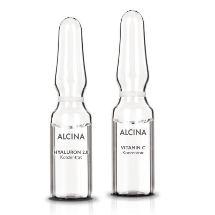 Die Kur besteht aus zwei unterschiedlichen Ampullen, die in Kombination für ein vitaleres Hautbild sorgen sollen. Die Hyaluron 2.0 Anti-Falten Ampulle (5x) nennt Alcina den „Jungbrunnen für die Haut“. Sie soll regenerieren und Trockenheitsfältchen mildern. Die Hyaluron Depots werden aufgefüllt und die Haut aufgepolstert. Die Vitamin C Vital-Aktiv-Ampulle (5x) soll die Zellaktivität anregen und so die hauteigene Collagenproduktion unterstützen. Für eine Minimierung der UV-Schäden und ein glatteres, gefestigteres Hautbild.