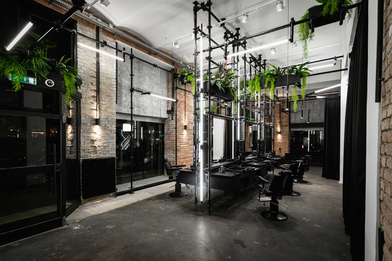 Das moderne Beleuchtungssystem lässt an den jeweils sechs Tattoo- und Barberplätzen die Details der neuen Haircuts und Tattoos noch mehr zur Geltung kommen, das hohe Stilbewusstsein und die zeitlose Eleganz spiegeln sich in jedem Bereich des Lofts wider.