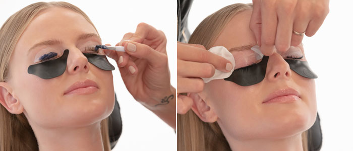 Den zweiten Wirkstoff Neutralizer auf der gleichen Stelle auftragen wie zuvor Lashperm. Einwirkzeit: 5 Minuten Nach der Einwirkzeit tupfen Sie Neutralizer 2 mit einem trockenen Wattestäbchen ab.