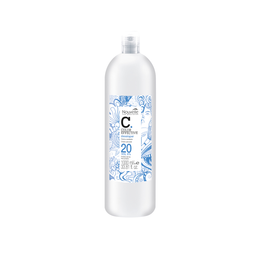 In die weiße Blondierung wurde ein blaues und ein rotes Pigment hinzugefügt. Das blaue ist sofort sichtbar, während das rote Pigment erst während des Anmischens sichtbar wird und sich dann zu violett entwickelt. Dadurch ist ein klares Ergebnis direkt sichtbar.