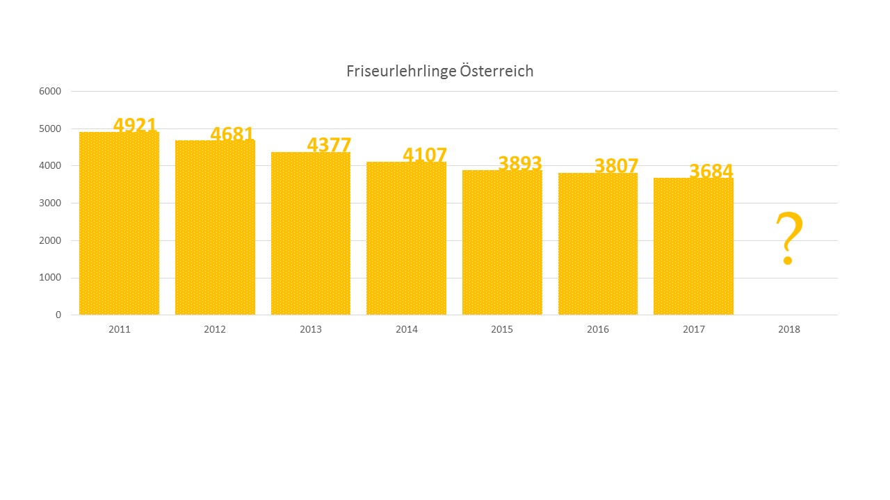 Der Vergleich zum Vorjahr zeigt einen erneuten Rückgang bei den Friseurlehrlingen. Der Abwärtstrend zeichnet sich schon seit mehreren Jahren ab, so wurden seit 2011 ein Rückgang von insgesamt 28% notiert.