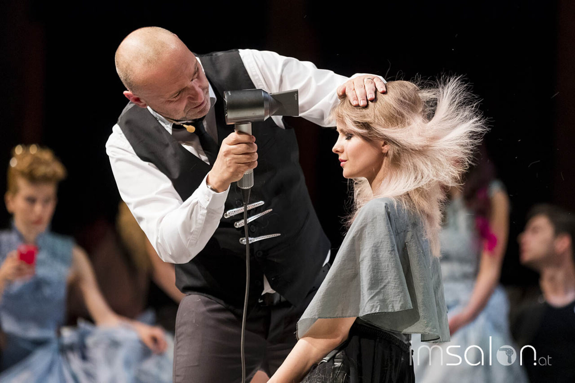 #LOREALPROAT prangte in großen Lettern auf der Bühne, Bertrams Thema des Tages: Digitalisierte Vernetzung mit Freunden, Kunden & Gleichgesinnten; wertvolle Tipps vom Fotoprofi inklusive und die Aufforderung, die Show zeitnah in social Media zu posten. Das war es auch, was Publikum und Modelle auf der Bühne taten.