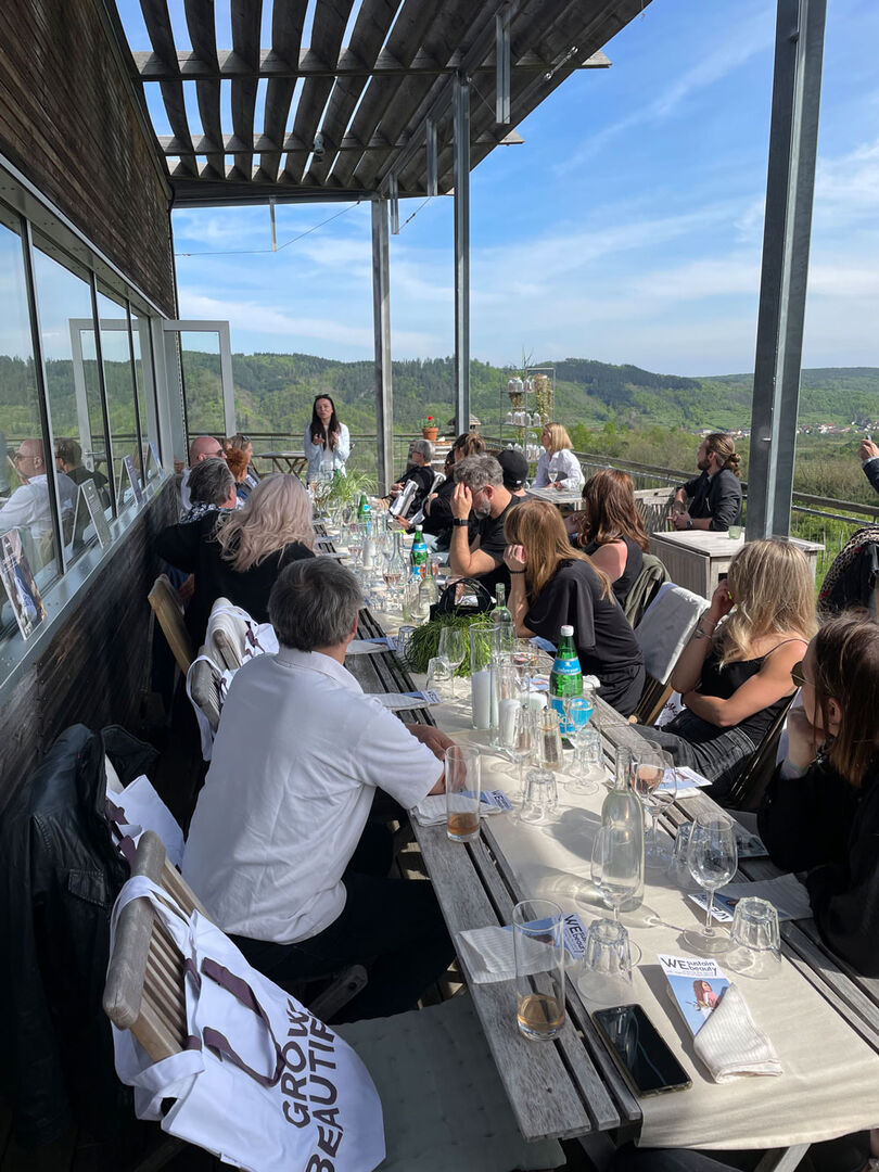 Regionale Köstlichkeiten, feine Weine aus nachhaltigem Anbau und das wunderbare Ambiente in den sonnigen Weinbergen sorgten für gute Stimmung bei den Gästen. Einblicke in Produktionsweisen von Davines, Inhaltsstoffe und gelebte Ethik boten viel Gesprächsstoff und bildeten die Basis für einen zukunftsorientierten Austausch über Nachhaltigkeit und gewissenhaften Ressourcenverbrauch.