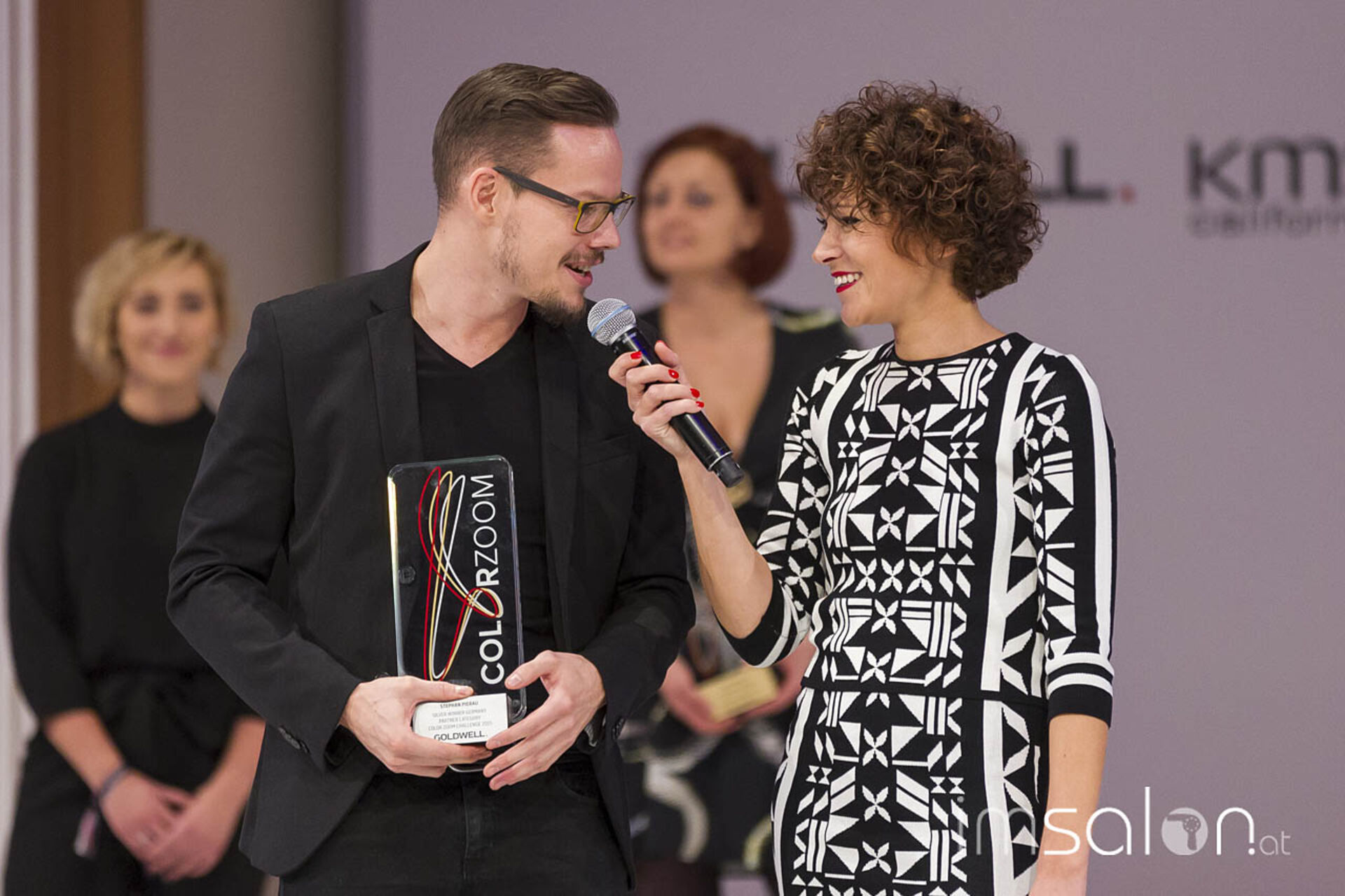 Der Auftakt in einen kurzweiligen Showtag: Die Verleihung der nationalen Goldwell Color Zoom Gewinne! Mit auf der Bühne auch Karin Overbeck, Tobias Staehle, Andreas Mignon und Mareike Bock.