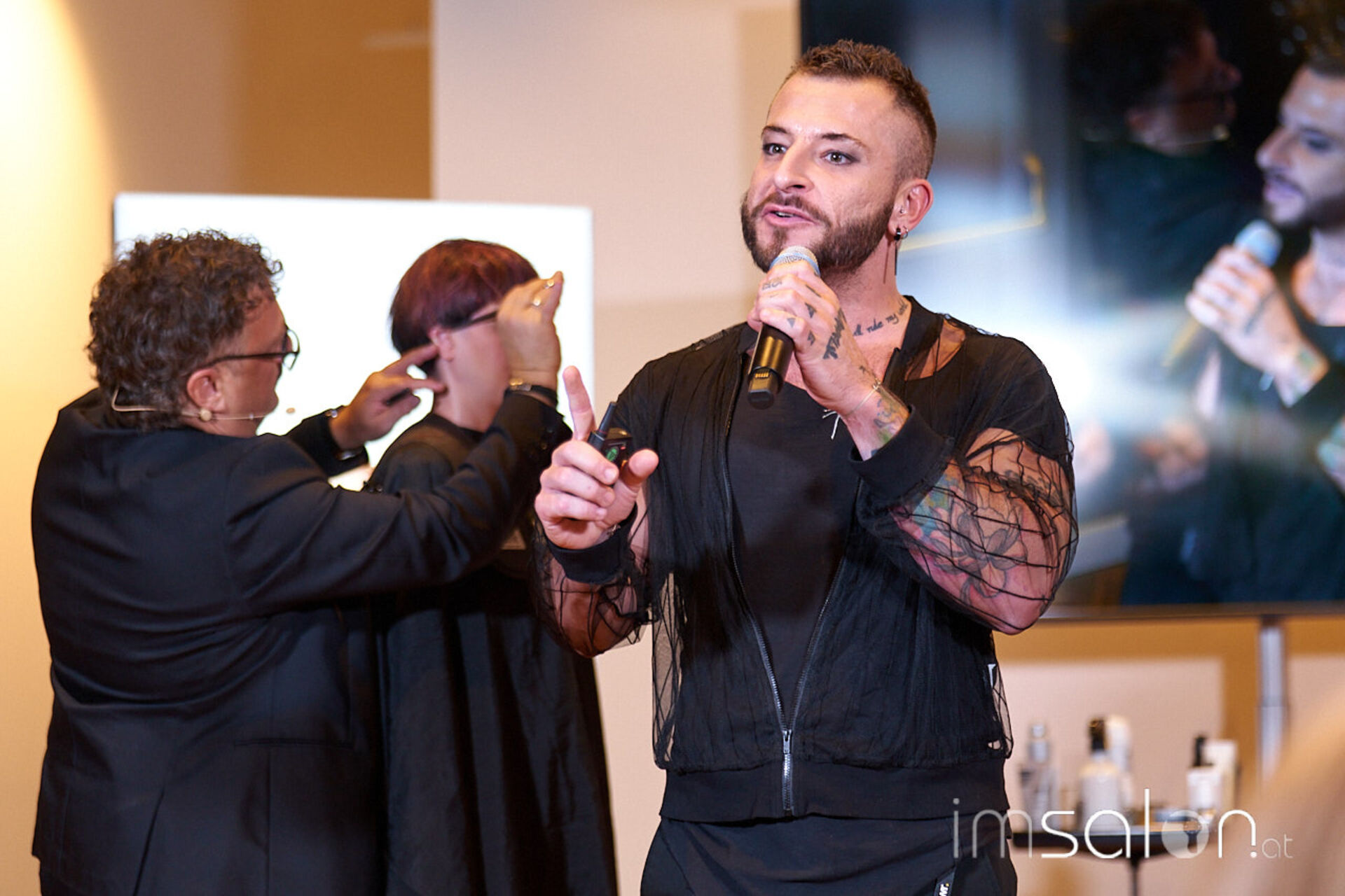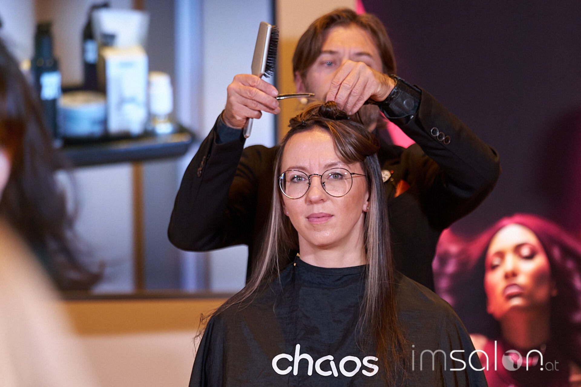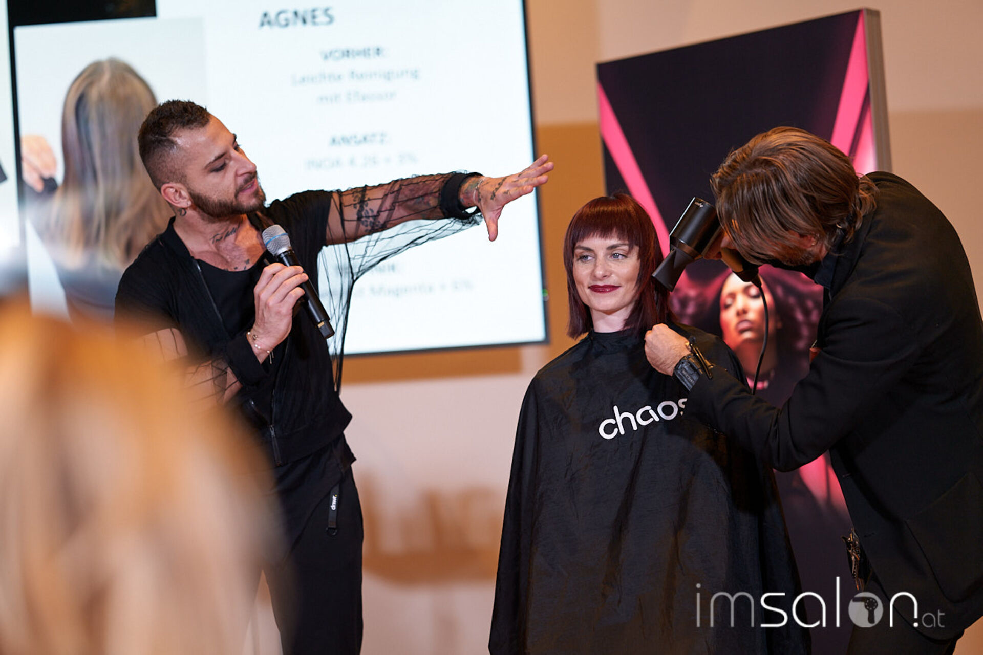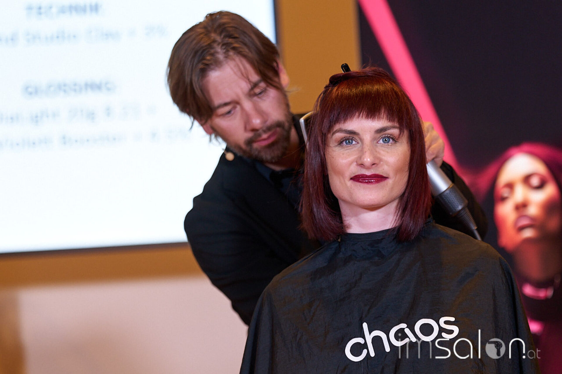 An den Scheren die chaos hairconcept Trendexperten Bernd und Joe Weissbacher, die schulungsaffin die aktuellen Hairtrends gewohnt souverän näher brachten. L’Oréals Brand Expert Daniel Lackner im Farbfieber erläuterte die Colortrends der kommenden Saison, allen voran Burgunderrot.