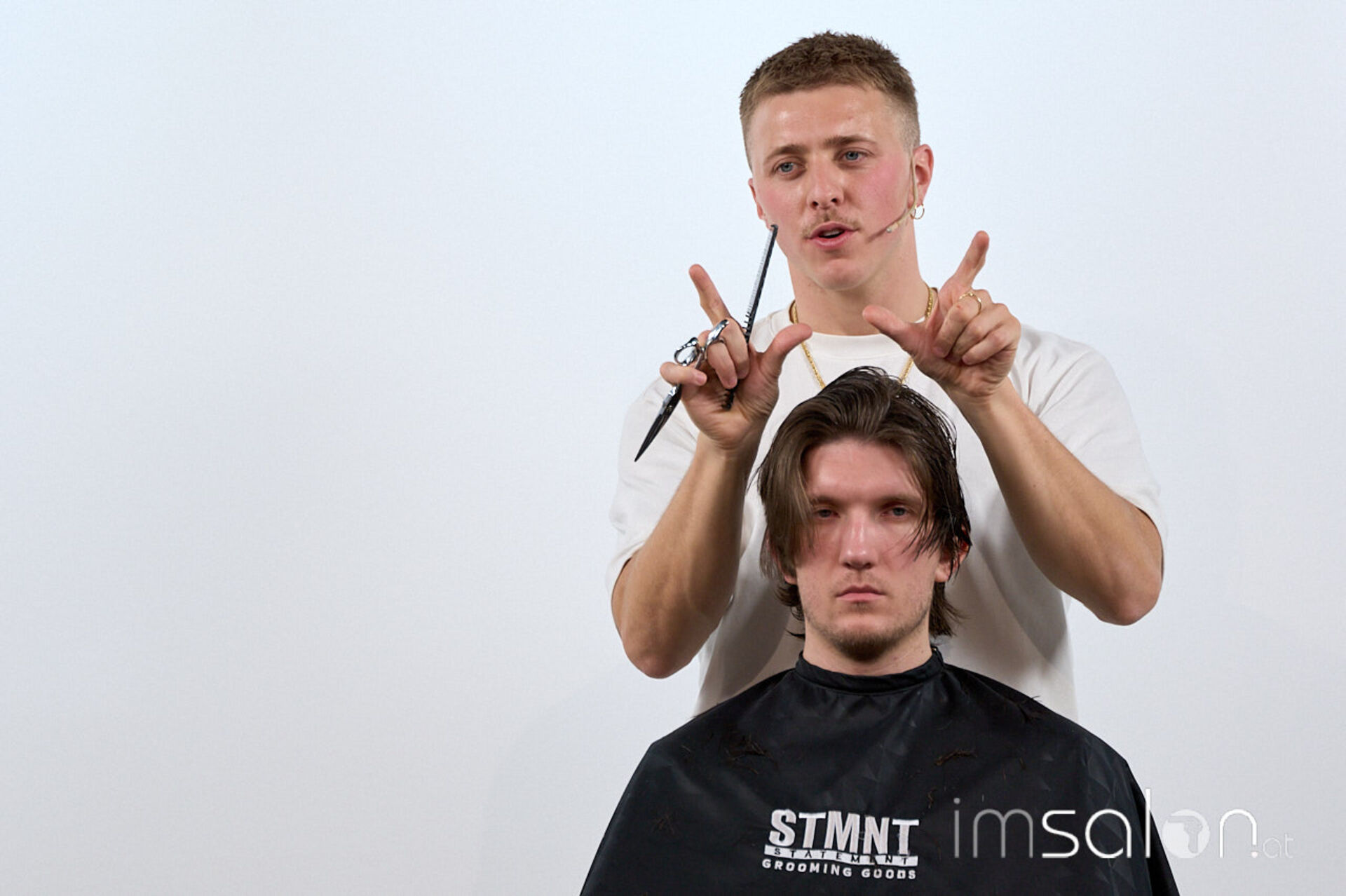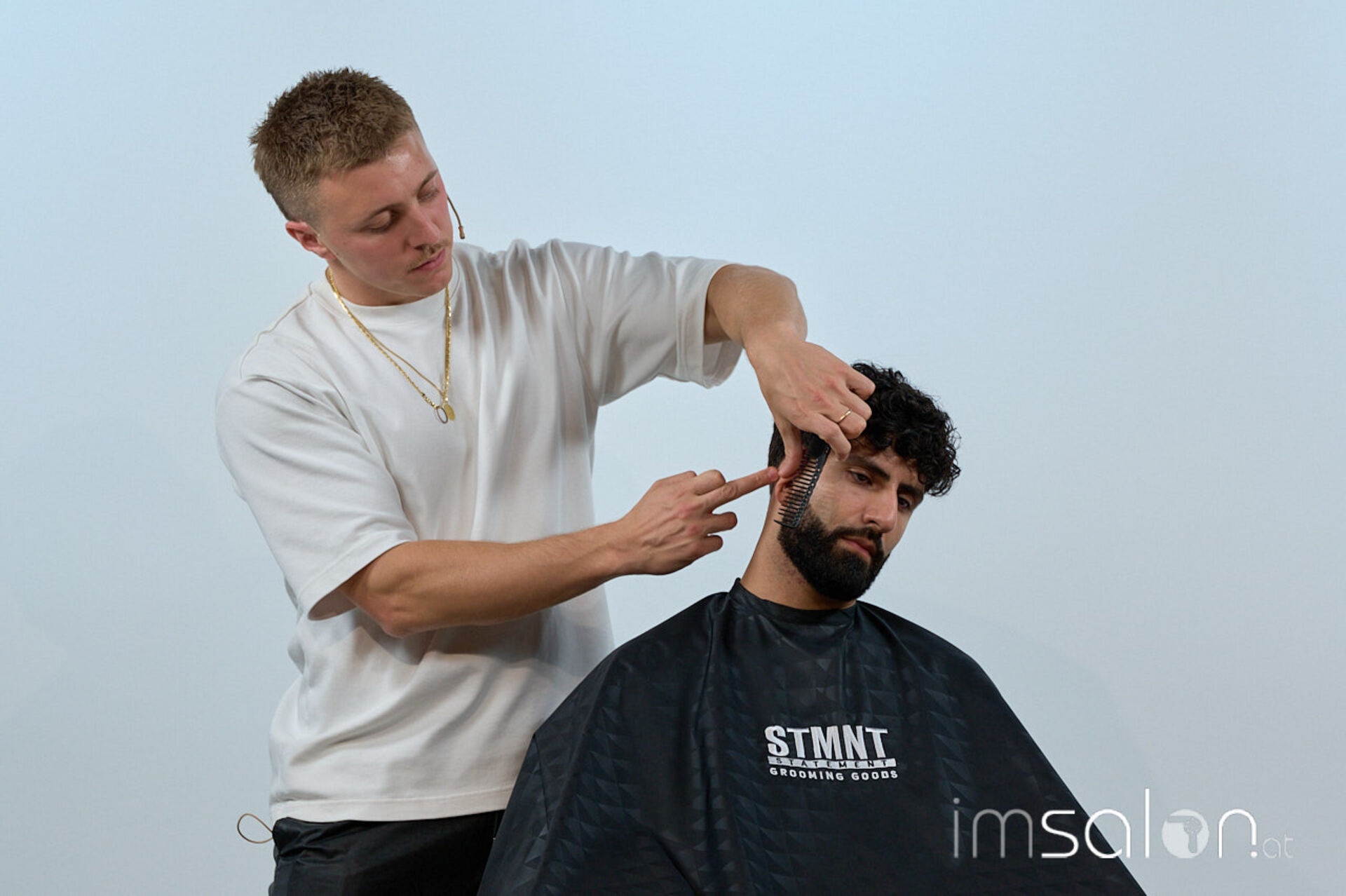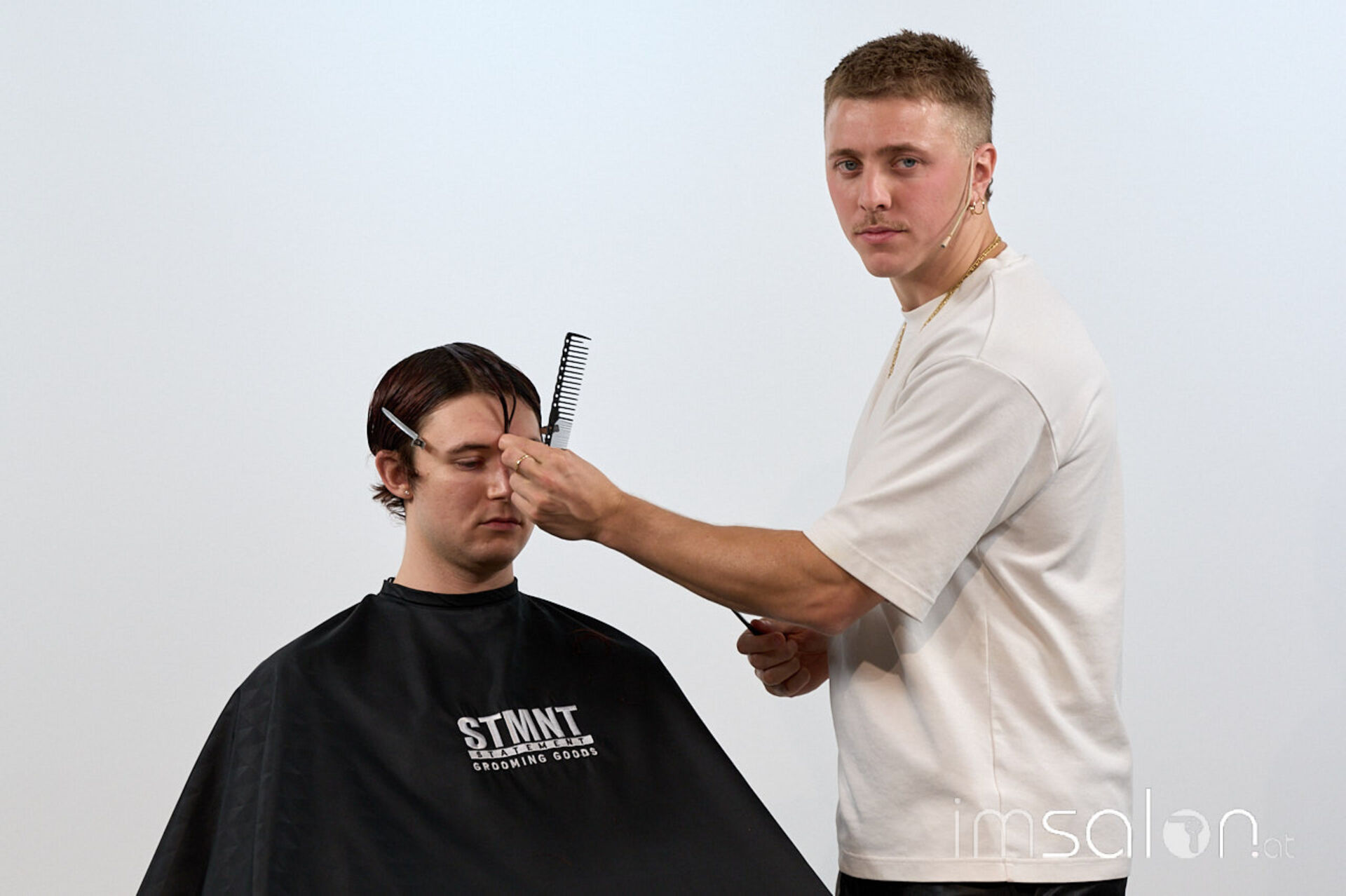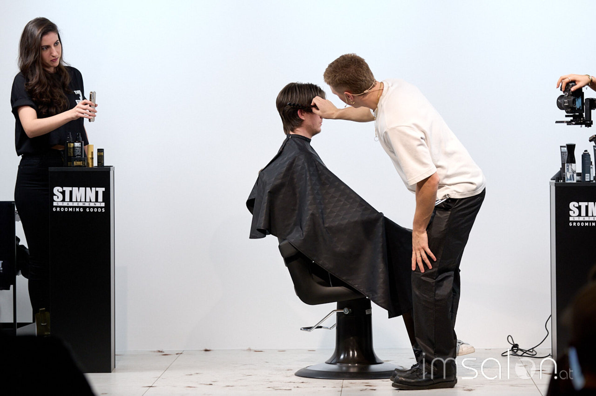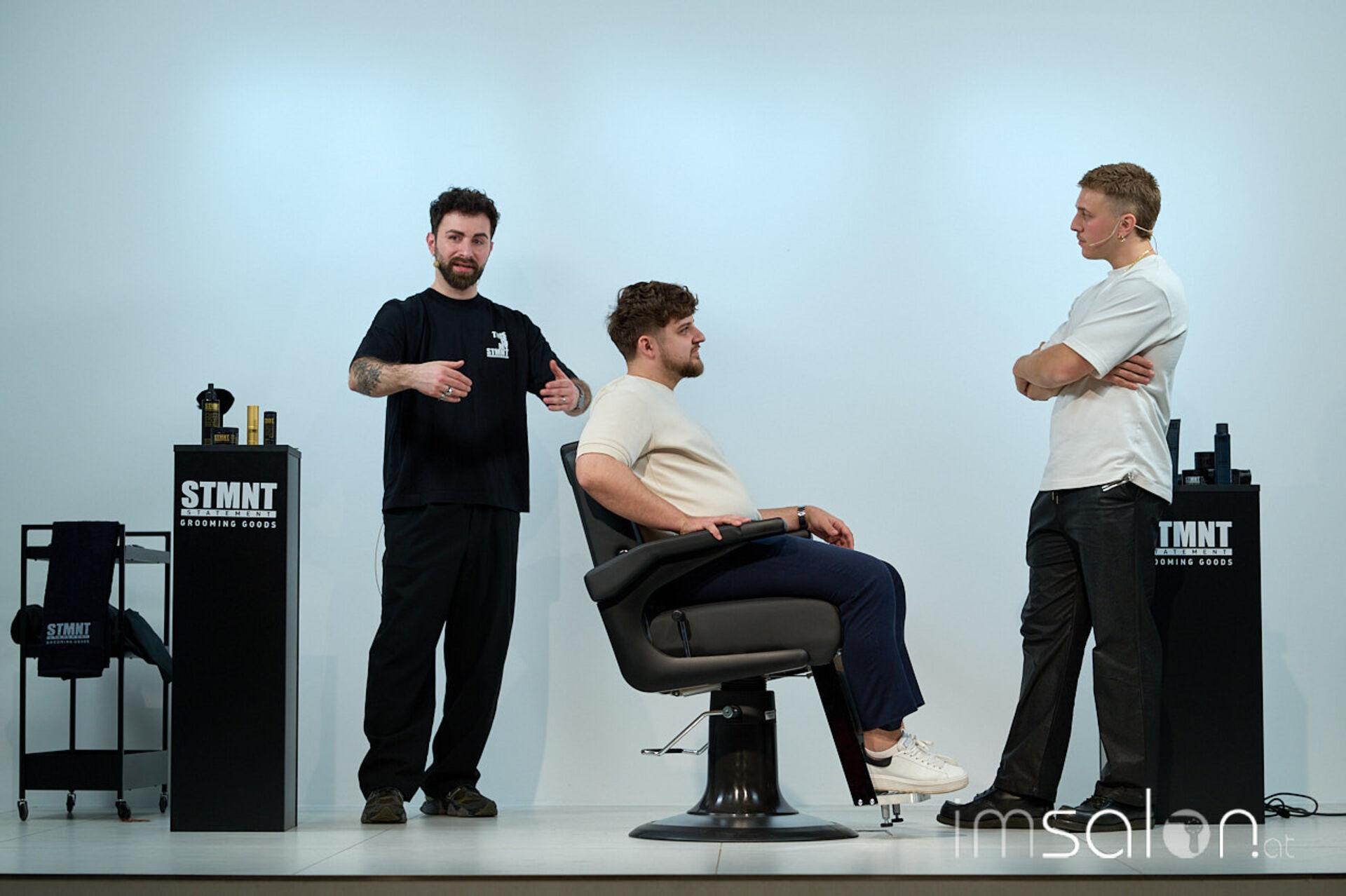 Für Bianca Kroupa (STMNT Grooming Goods) eine Selbstverständlichkeit: „Andrea vereint das Beste aus beiden Barber-Welten, für die die Marke STMNT steht. Zum einen die Präzisionsschnitte aus der UK Schule, die er selbst auch lebt, und zum anderen das Smoothfading aus den USA.“
