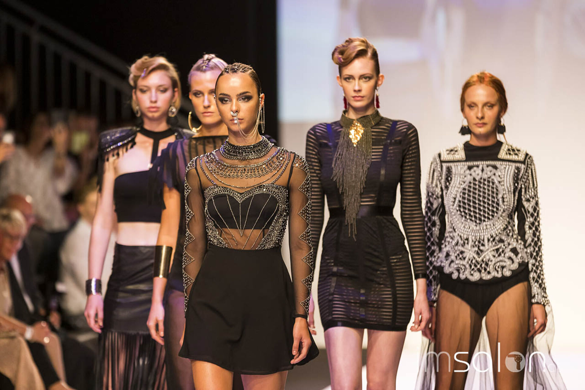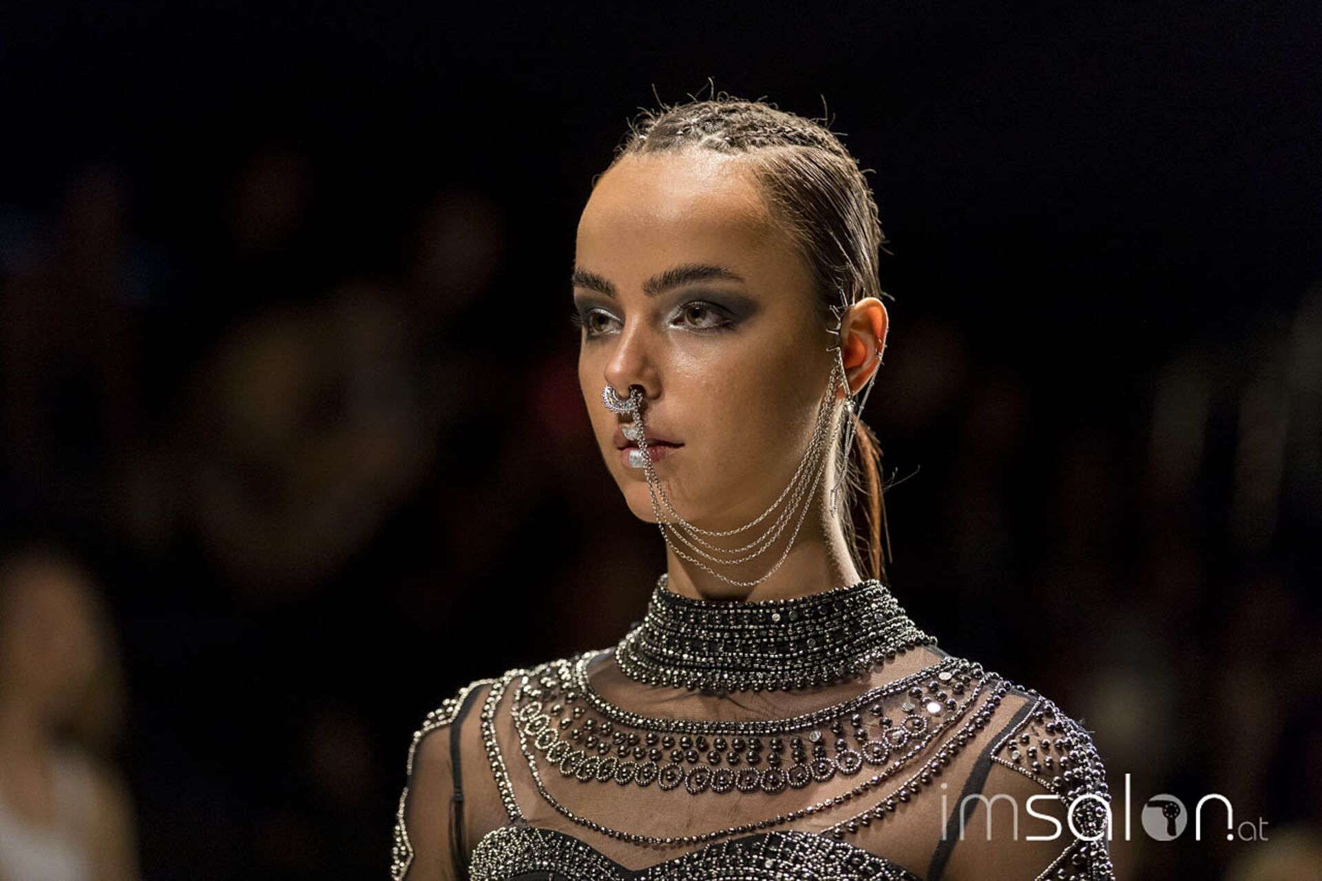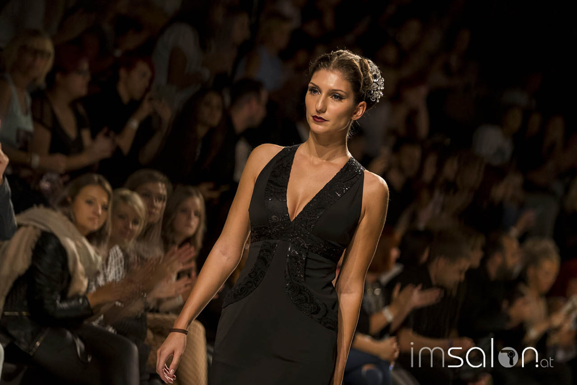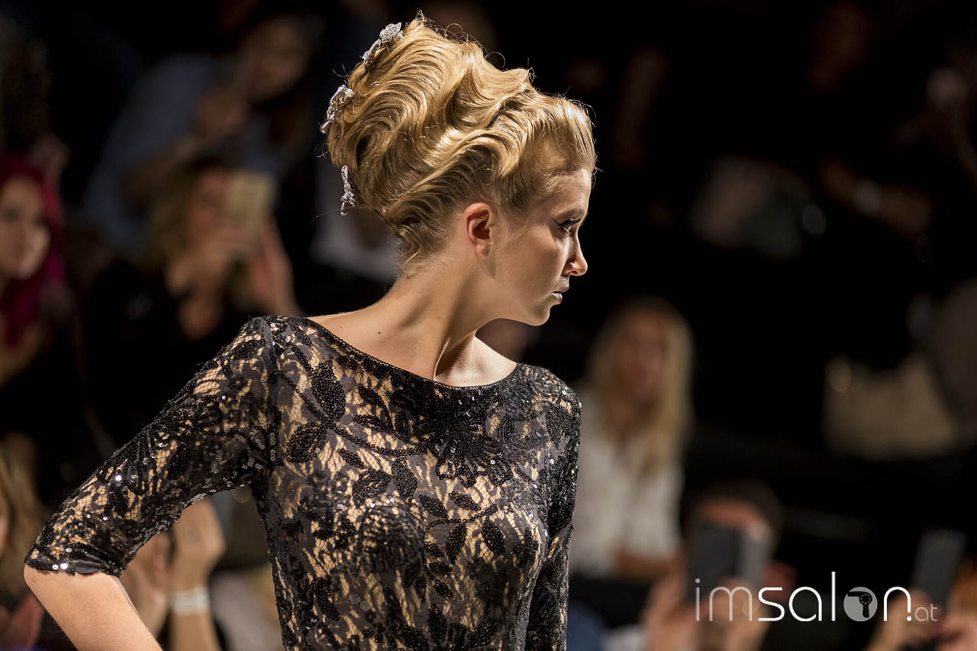 Opulent, pompös und prunkvoll waren die Frisureninspirationen des Franzosen Frédéric Pavard. "High Hair", viel Volumen und Toupage zogen sich durch seine Styles des Abends, ergänzt durch prächtig, glitzerndem Kristallhaarschmuck, der sein Revival feiert. Ein großes Thema für die neuen Hochstecktrends sind Wasserwellen, in allen Größen und Formen - Frédéric Pavard kreierte einen Allover-Wasserwellen-Dutt. Fasziniert von seiner Art, mit welch Leichtigkeit und Schnelligkeit er seine Haarkreationen an den Models anfertigte, kann man nur sagen "Très chic!"