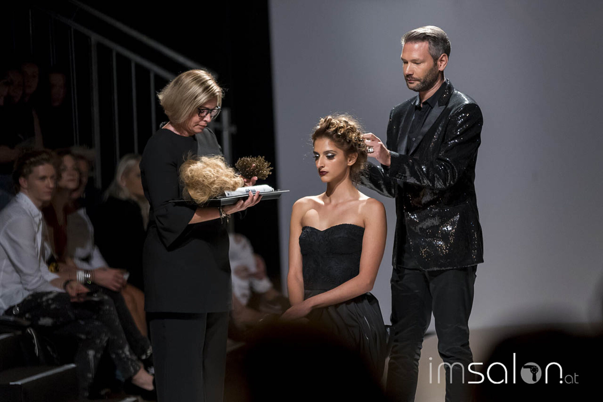 "Kundinnen wollen nach dem Friseurbesuch immer gerne anders aussehen, aber dennoch nichts verändern, ja nicht mehr als Spitzen abschneiden... Wer kennt das?", begann Marco Arena seine Show. Die Hände der anwesenden StylistInnen gingen auf der Stelle nach oben - im gesamten Fashion-Zelt.