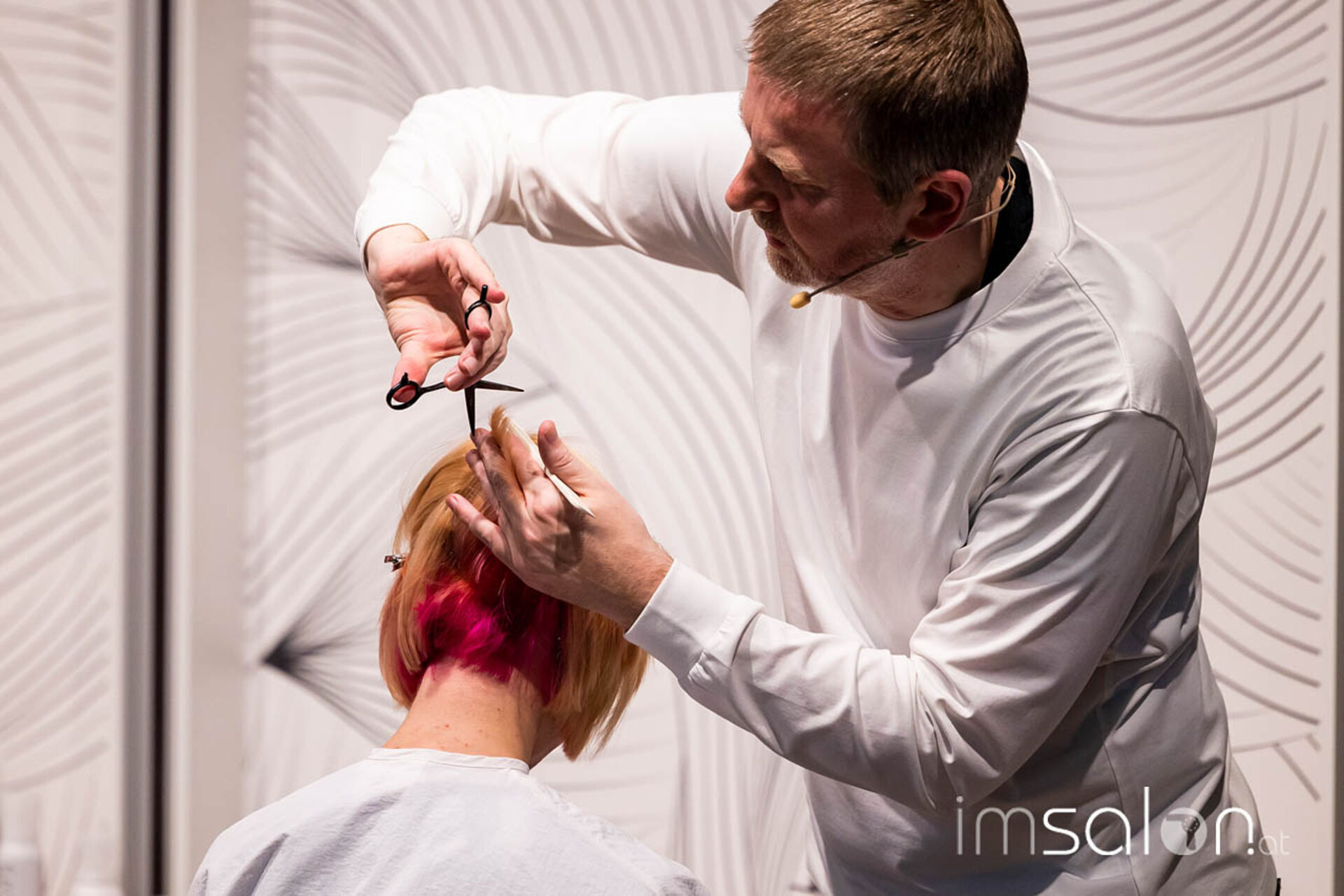 Emotional stimmte der Executive Director von Vidal Sassoon Deutschland in seiner emotionalen Begrüßung auf die aktuelle Kollektion ein. Denn Peter Dawson, sein langjähriger Wegbegleiter und Sassoons European Colour Director, ist nach seinem überraschenden Tod vor zwei Jahren noch all gegenwärtig und selbst auf Reisen dabei: Im Vorbereitungsraum hängen ein Foto und sein Notizbuch mit handschriftlichen Rezepturen. „Wir werden ihm gebührend zeigen, was wir können“, so Gerald. Und keine Frage, das Sassoon Creative Team brillierte.