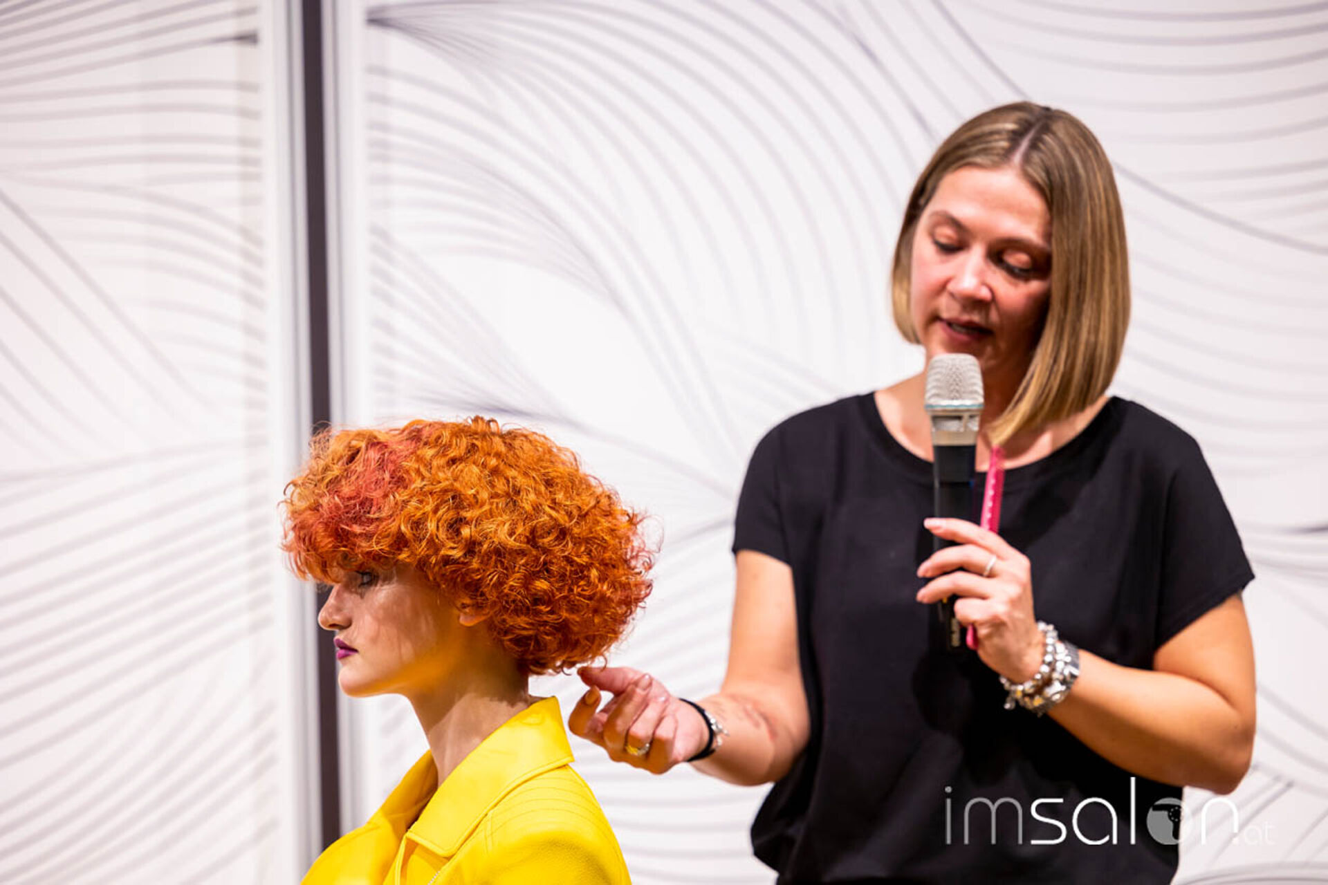 ►Birgit Keppel, Senior Education Managerin Wella Company, betreute im vergangenen Jahr die Studio-Neuentwicklung. Sie begrüßte zu Beginn der Show die ersten Gäste im voll besetzten Studio und übergab an Gerald Battle Welsh.