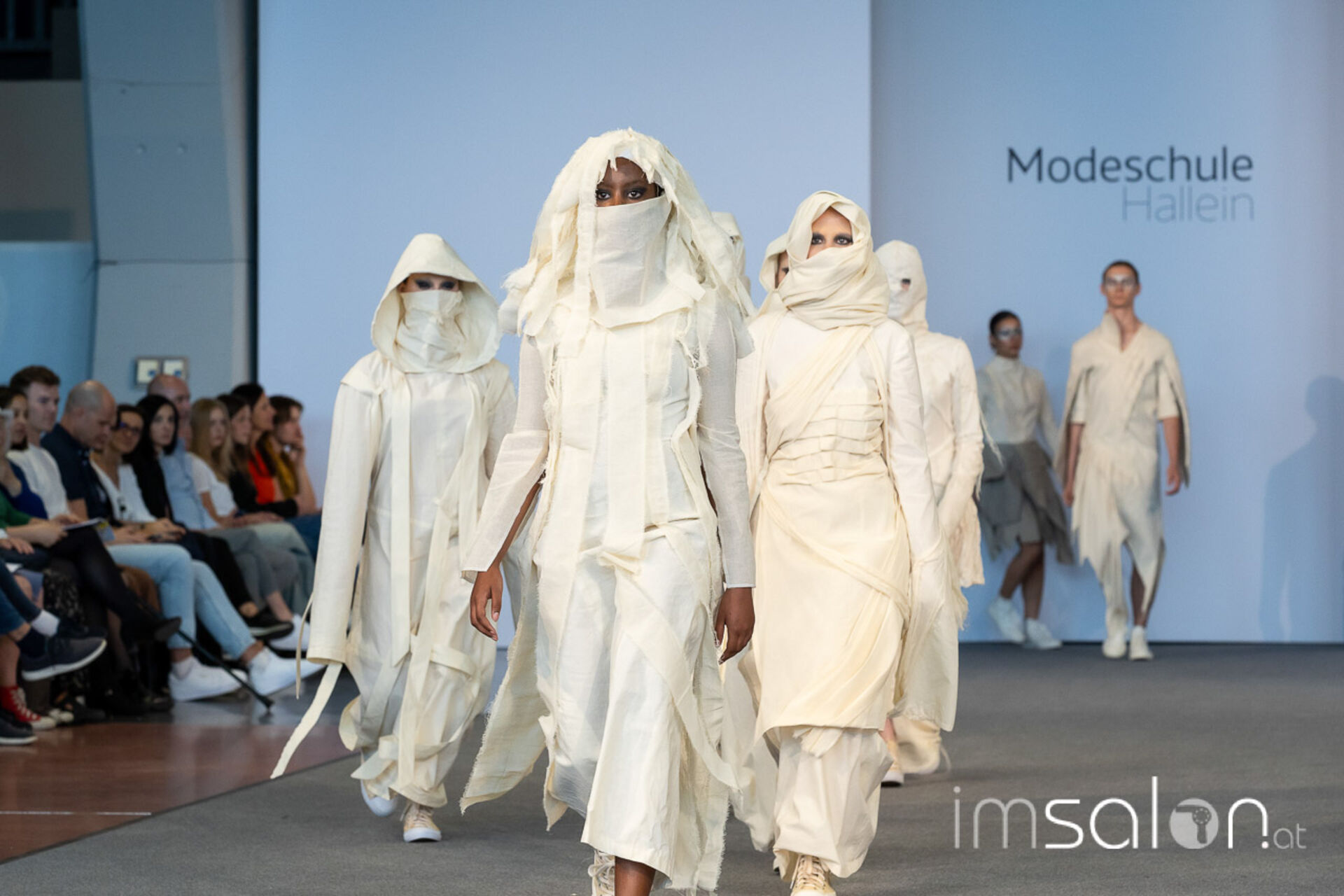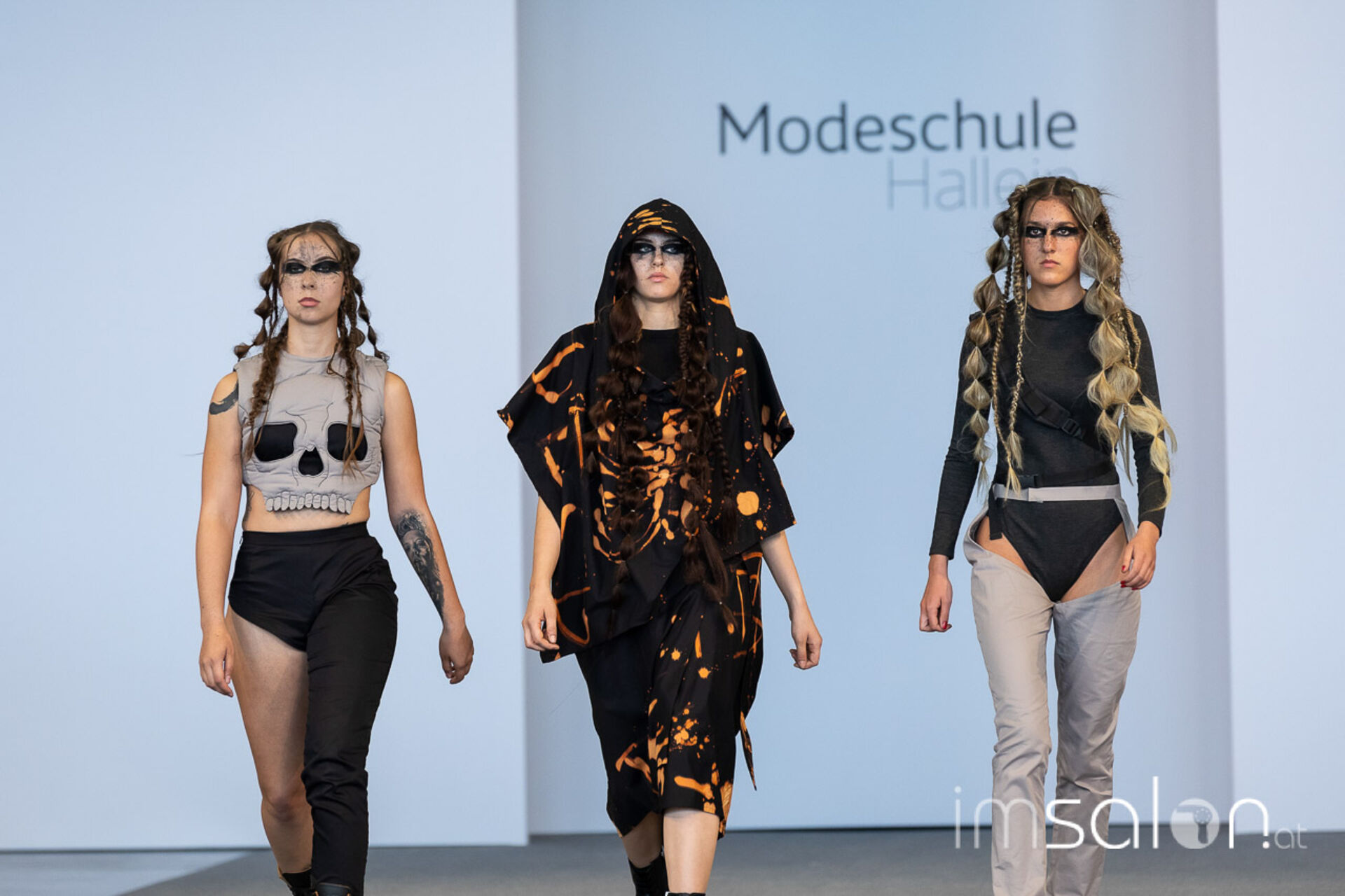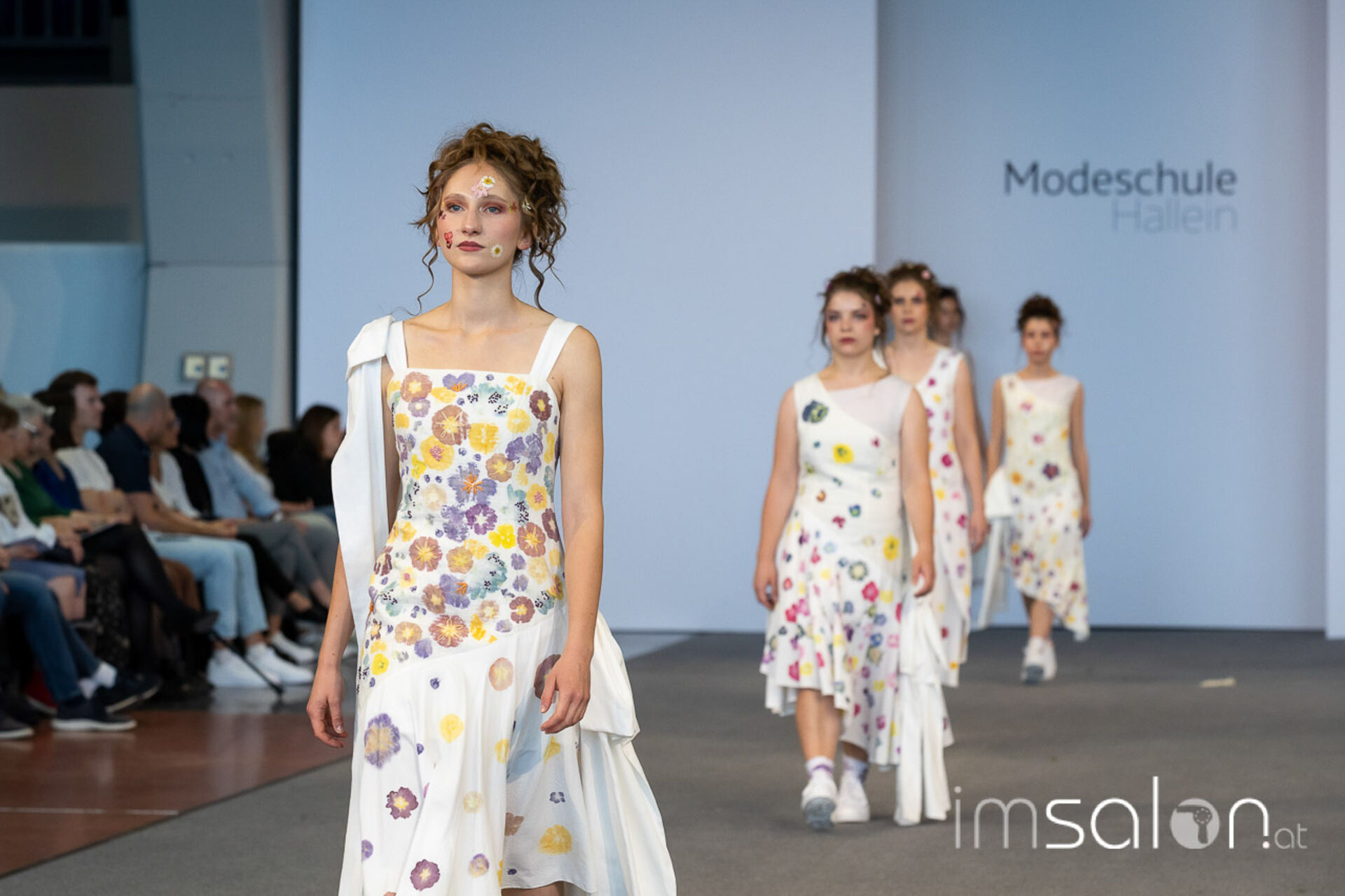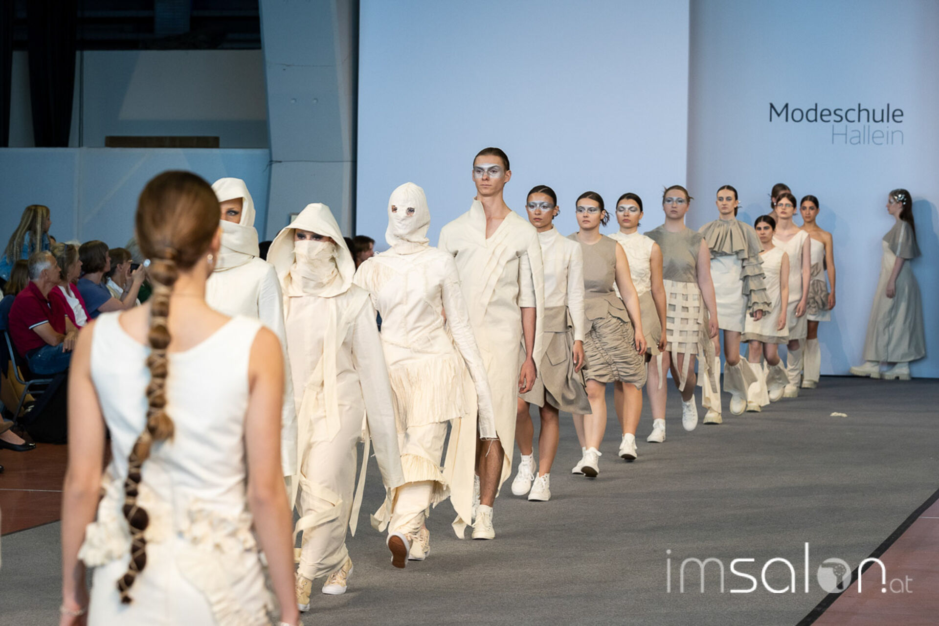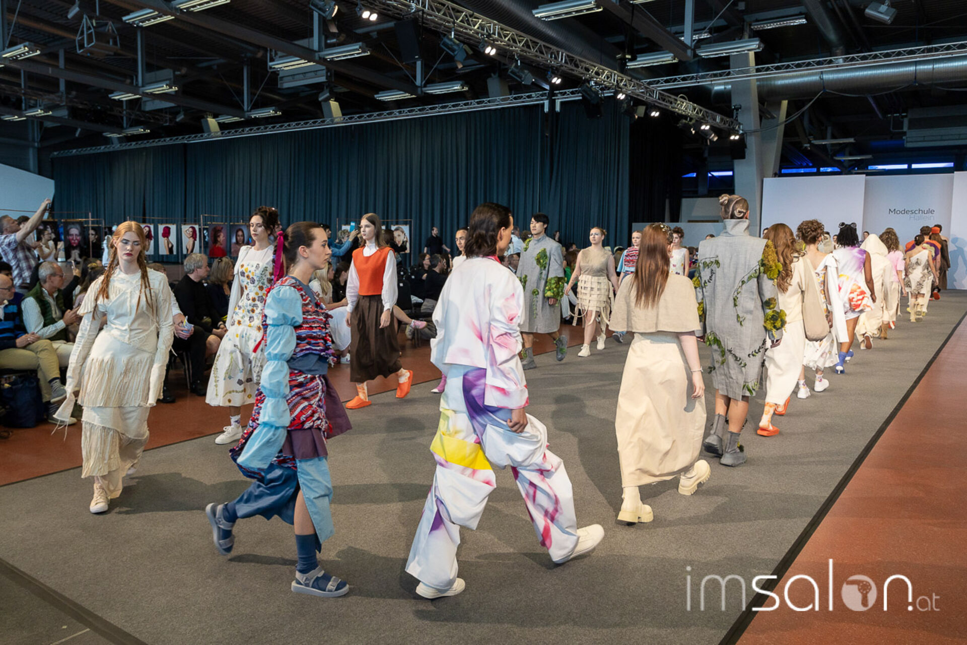 Bei der großen Fashion-Abschluss-Show im Terminal 2 des Salzburger Flughafens präsentierten die Nachwuchsdesignerinnen und -Designer der Modeschule Hallein ihre Kollektionen. Dabei wurden sie von den Schüerinnen und Schülern des Hairstylung, Make-up & Visagisten Zweiges unterstützt, die das gesamte Styling der Modelle von der Frisur bis zum Make-up übernahmen.