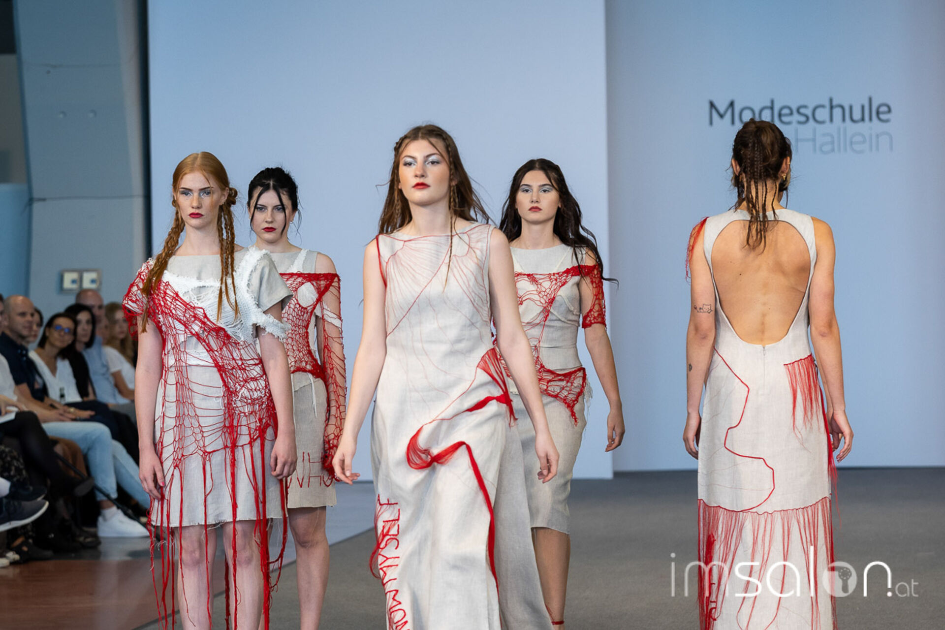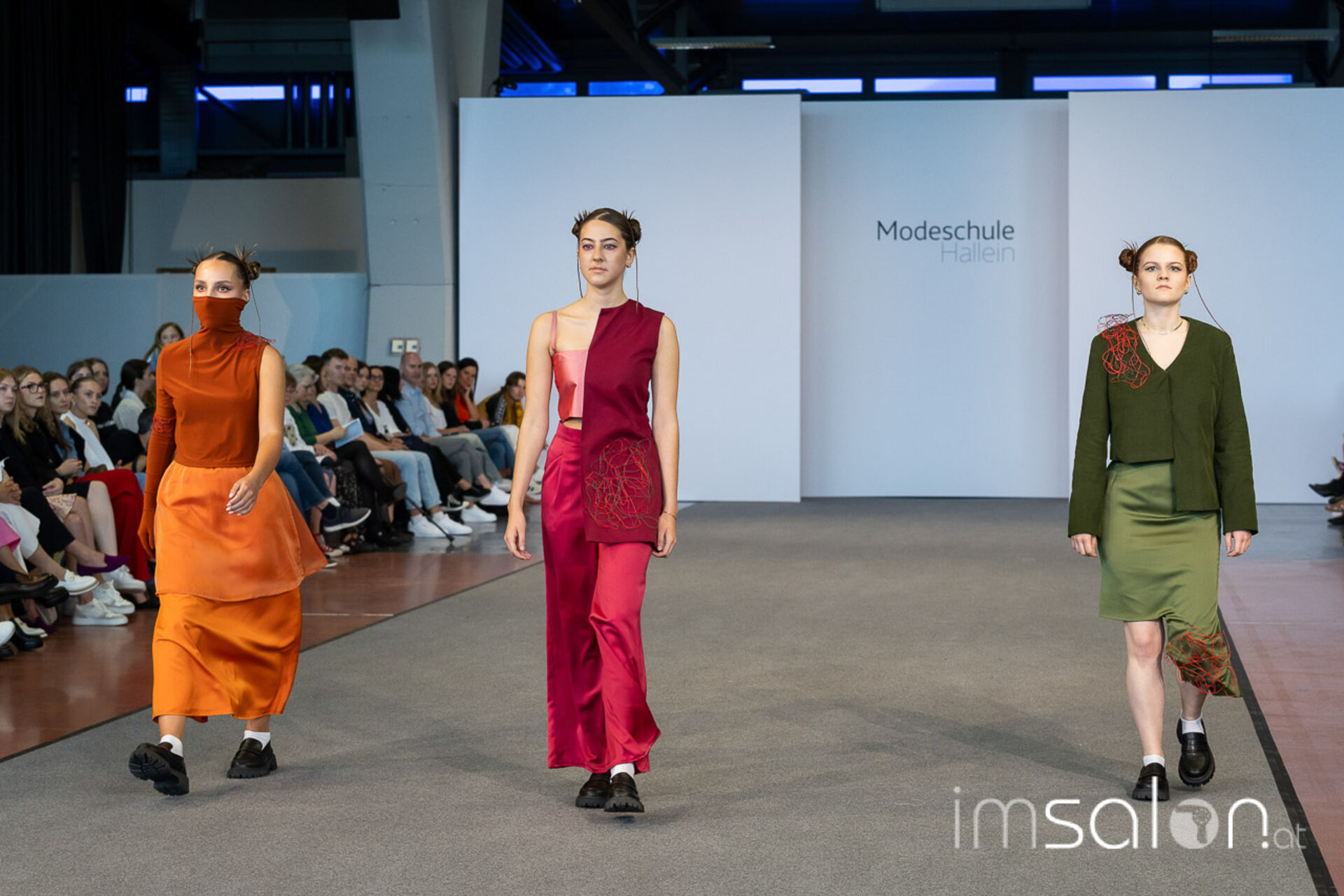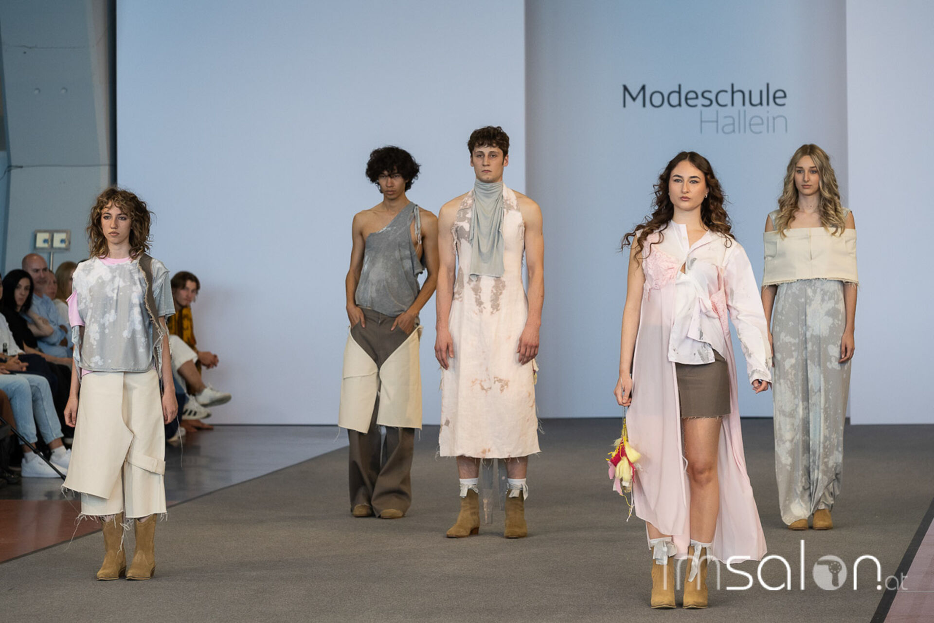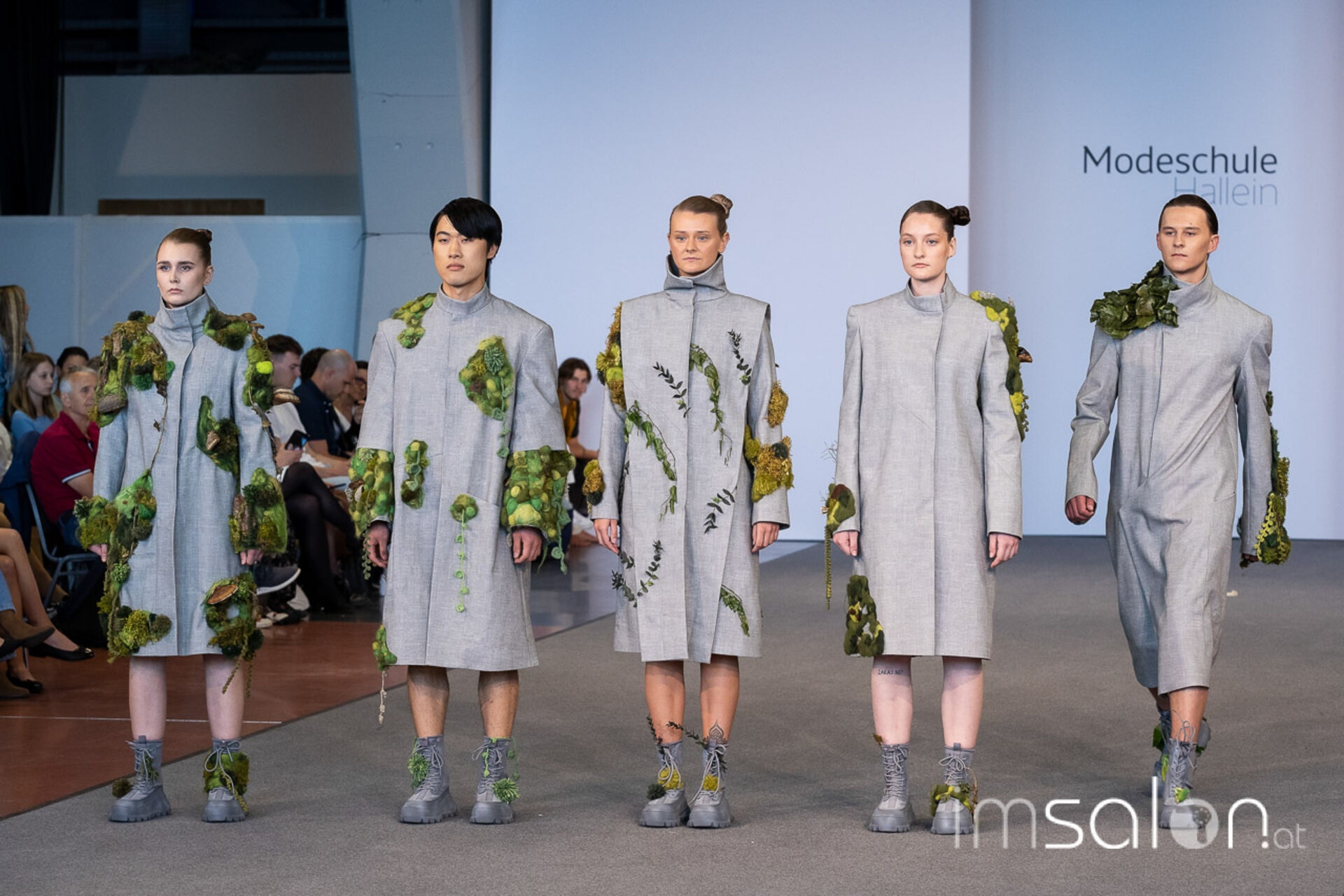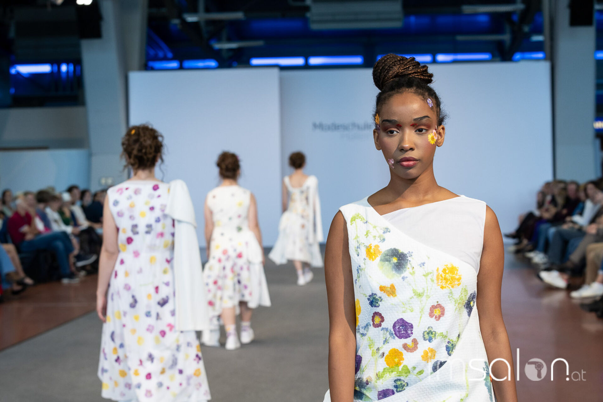 Bei der großen Fashion-Abschluss-Show im Terminal 2 des Salzburger Flughafens präsentierten die Nachwuchsdesignerinnen und -Designer der Modeschule Hallein ihre Kollektionen. Dabei wurden sie von den Schüerinnen und Schülern des Hairstylung, Make-up & Visagisten Zweiges unterstützt, die das gesamte Styling der Modelle von der Frisur bis zum Make-up übernahmen.