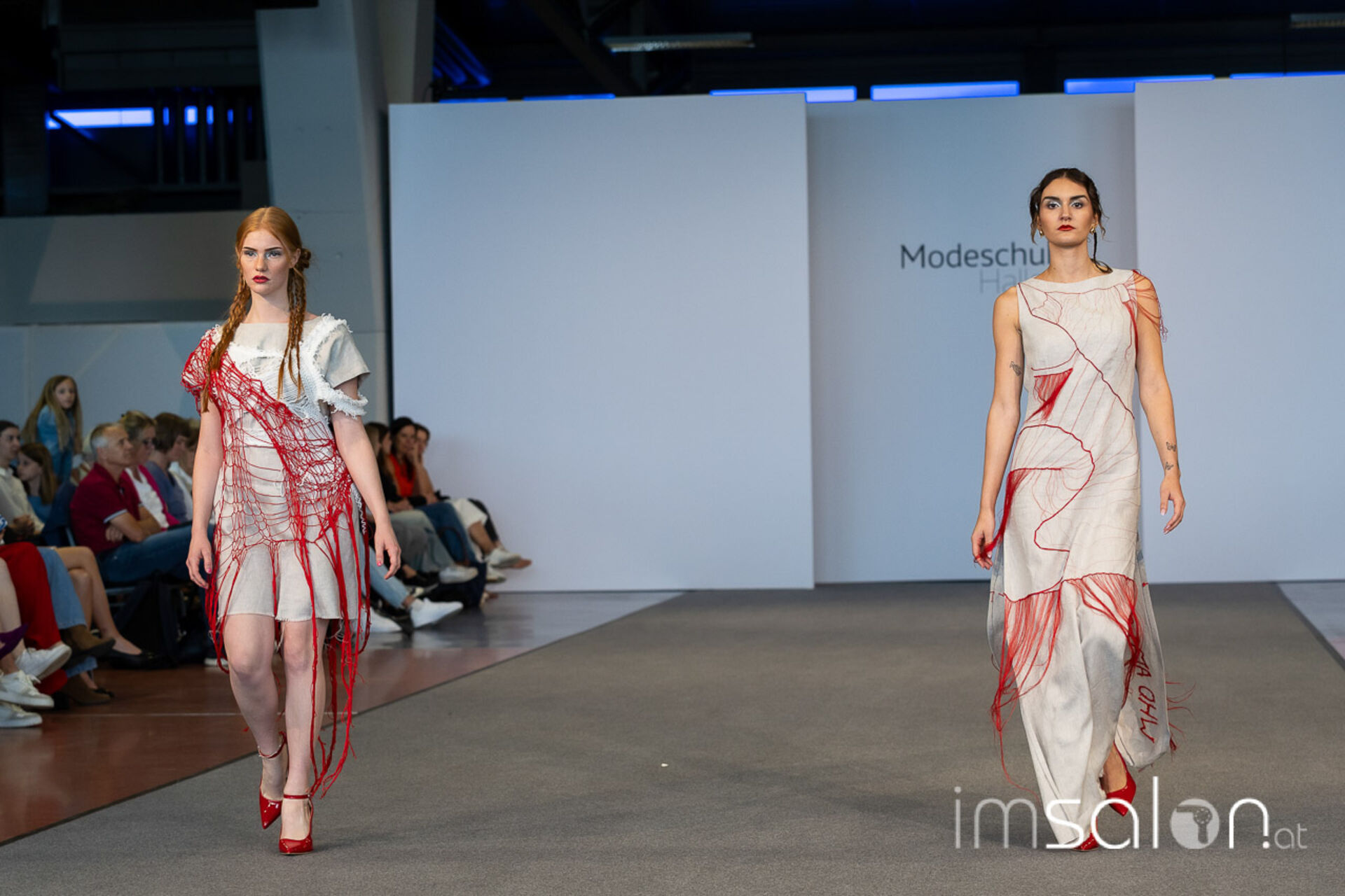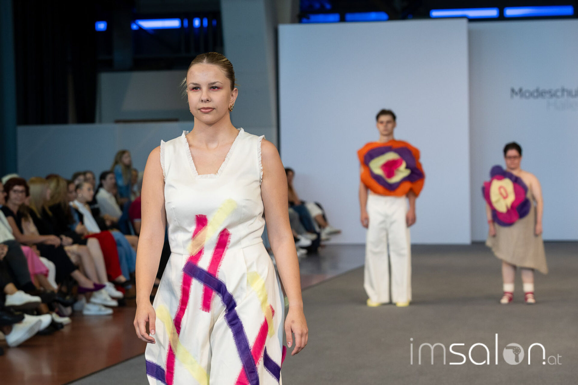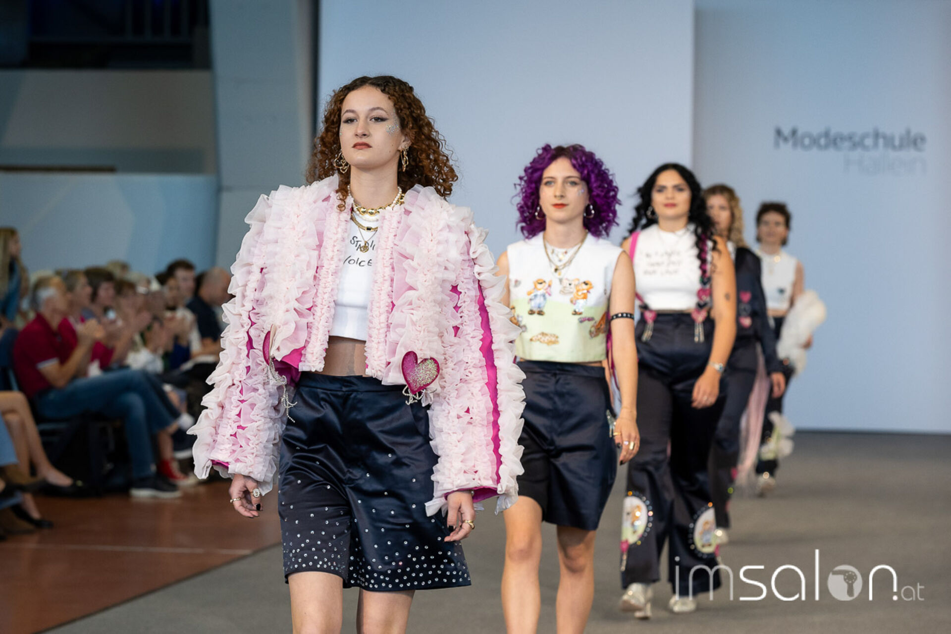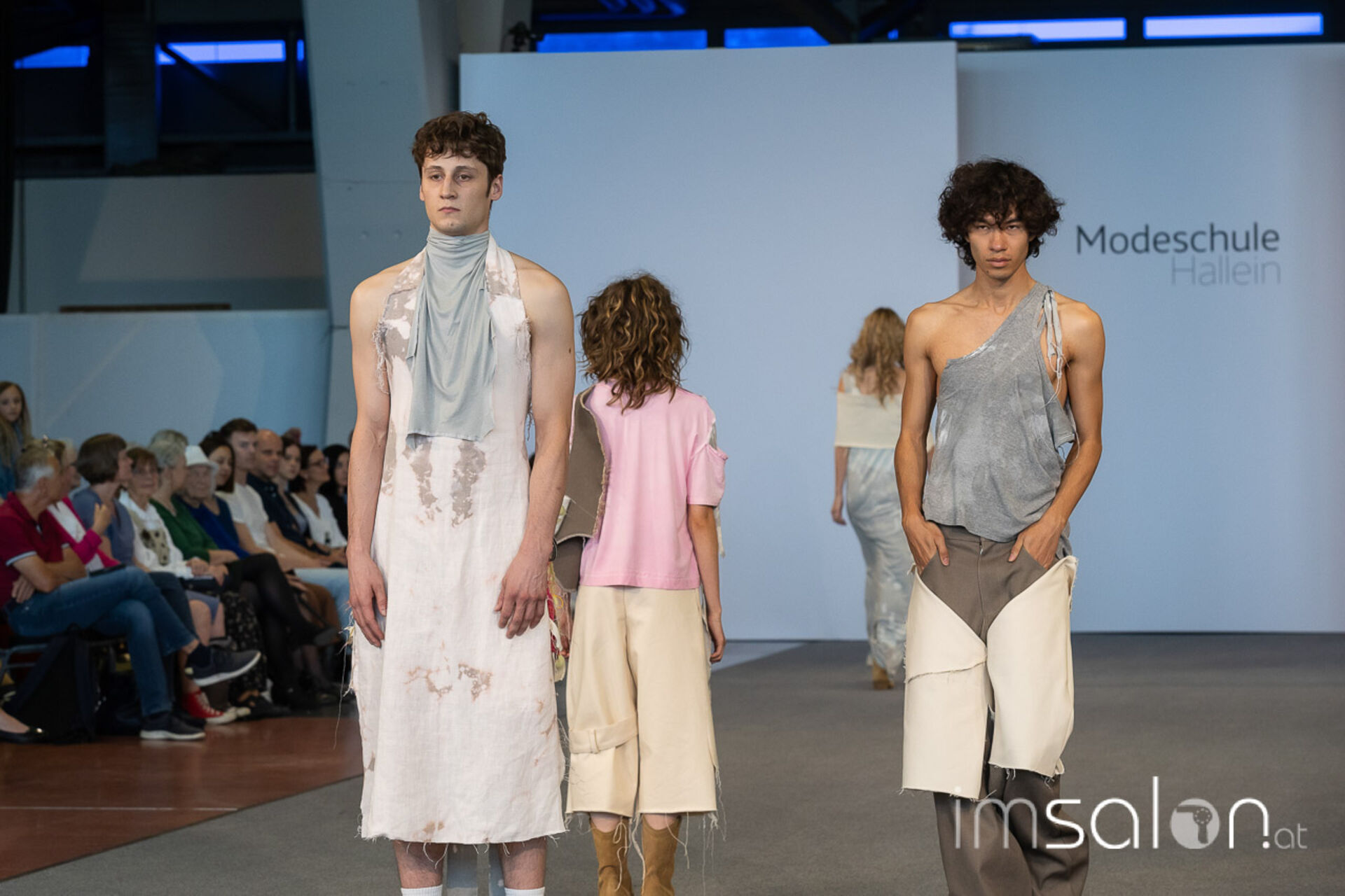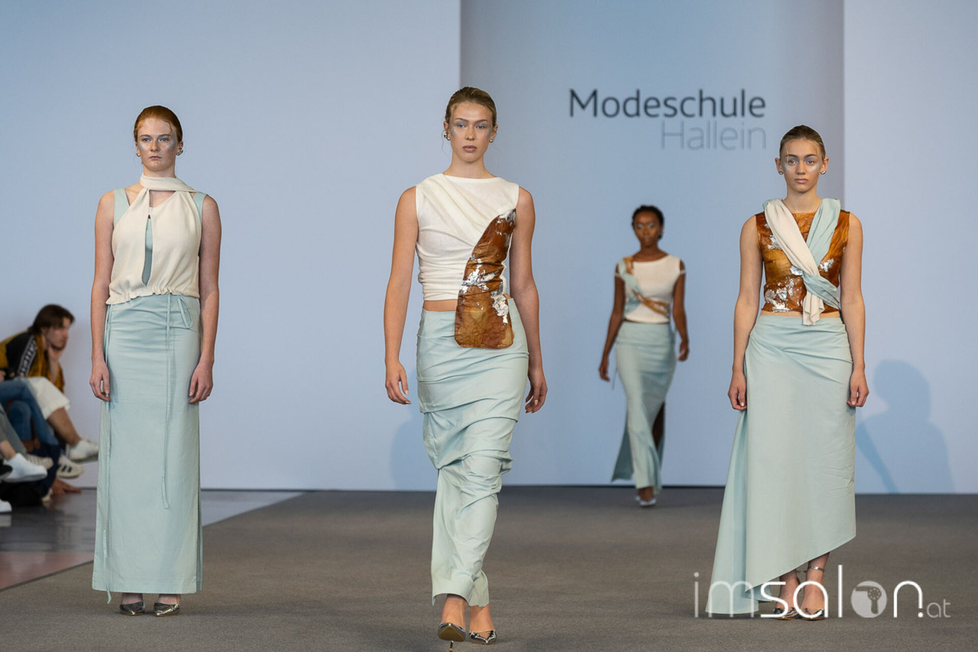 Bei der großen Fashion-Abschluss-Show im Terminal 2 des Salzburger Flughafens präsentierten die Nachwuchsdesignerinnen und -Designer der Modeschule Hallein ihre Kollektionen. Dabei wurden sie von den Schüerinnen und Schülern des Hairstylung, Make-up & Visagisten Zweiges unterstützt, die das gesamte Styling der Modelle von der Frisur bis zum Make-up übernahmen.