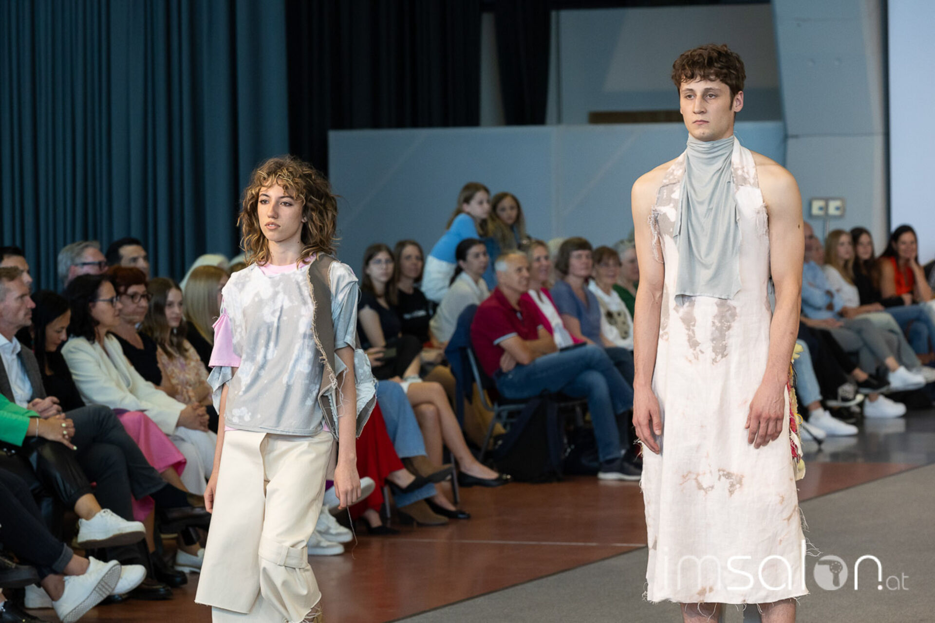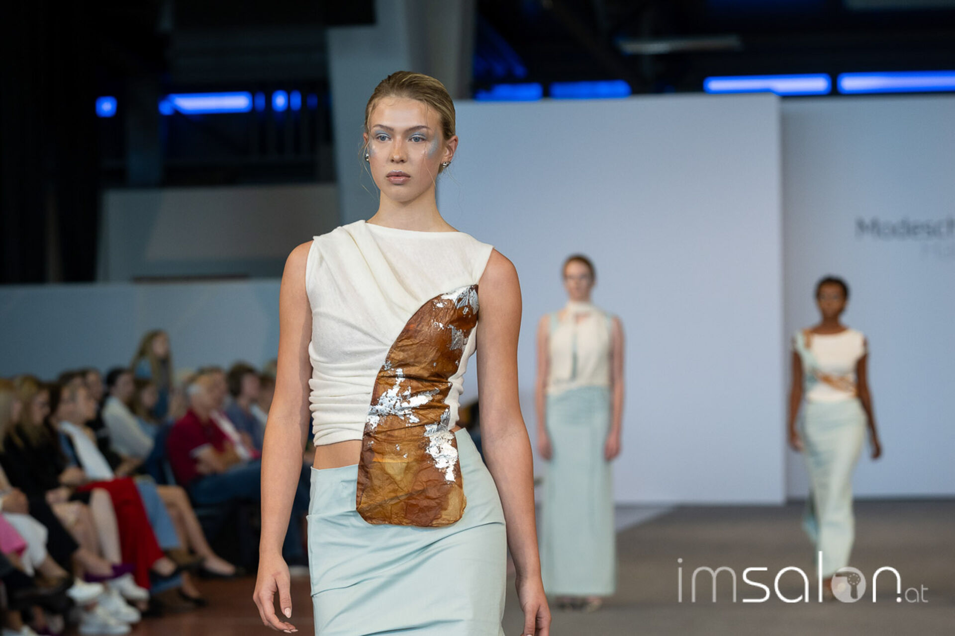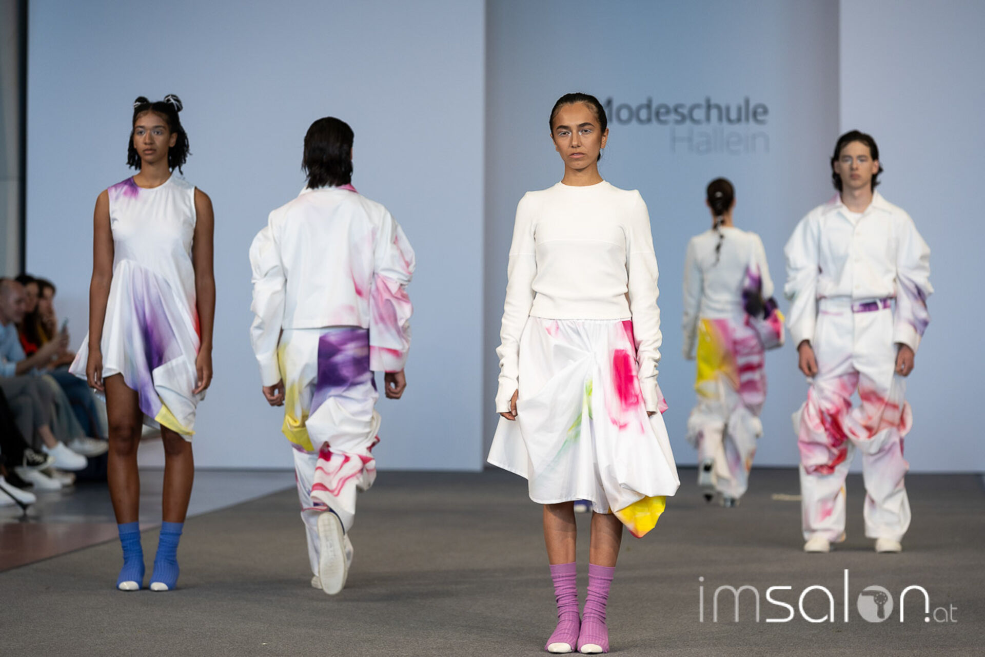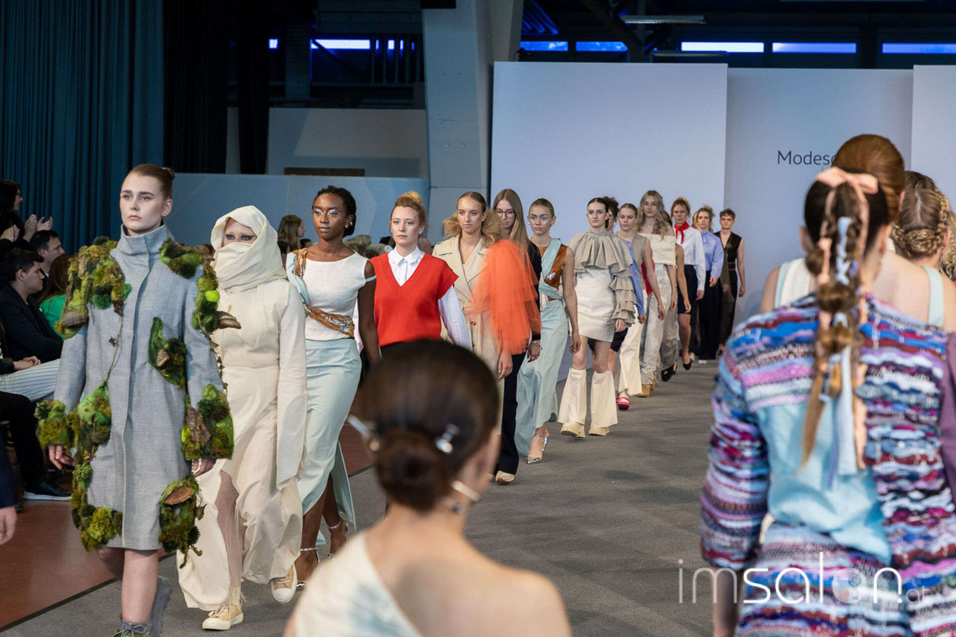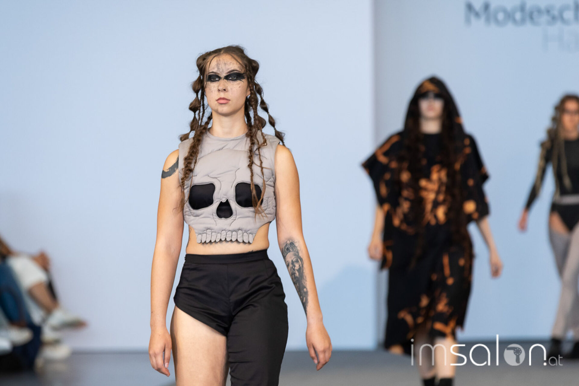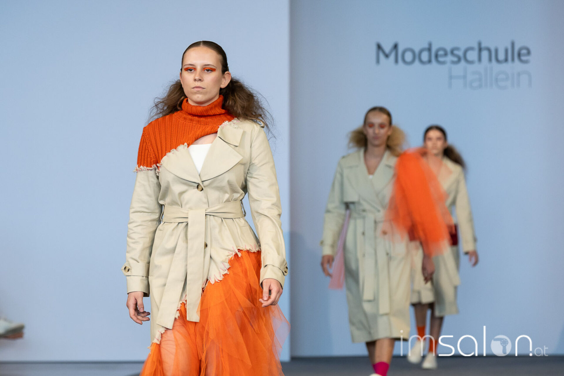 Bei der großen Fashion-Abschluss-Show im Terminal 2 des Salzburger Flughafens präsentierten die Nachwuchsdesignerinnen und -Designer der Modeschule Hallein ihre Kollektionen. Dabei wurden sie von den Schüerinnen und Schülern des Hairstylung, Make-up & Visagisten Zweiges unterstützt, die das gesamte Styling der Modelle von der Frisur bis zum Make-up übernahmen.