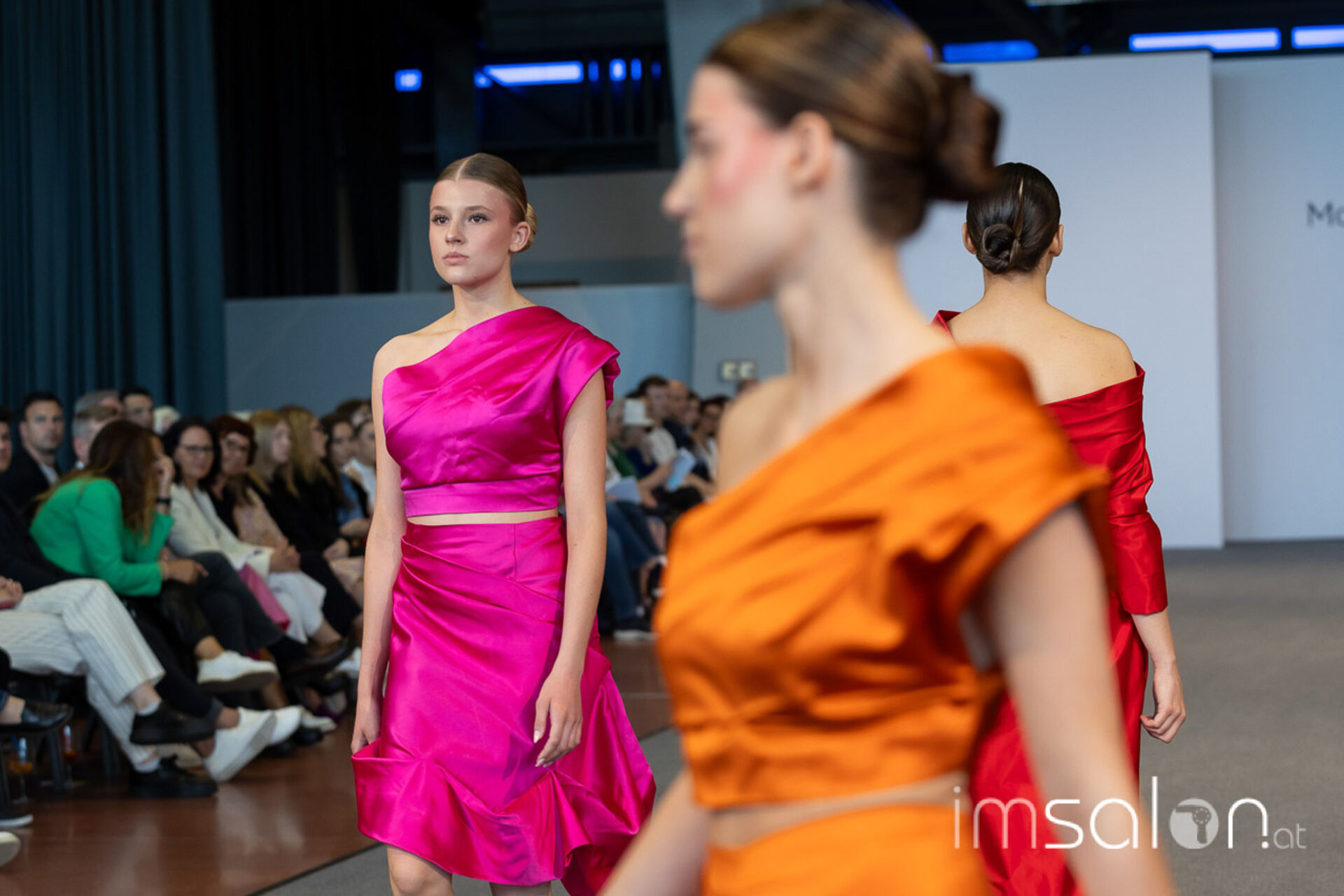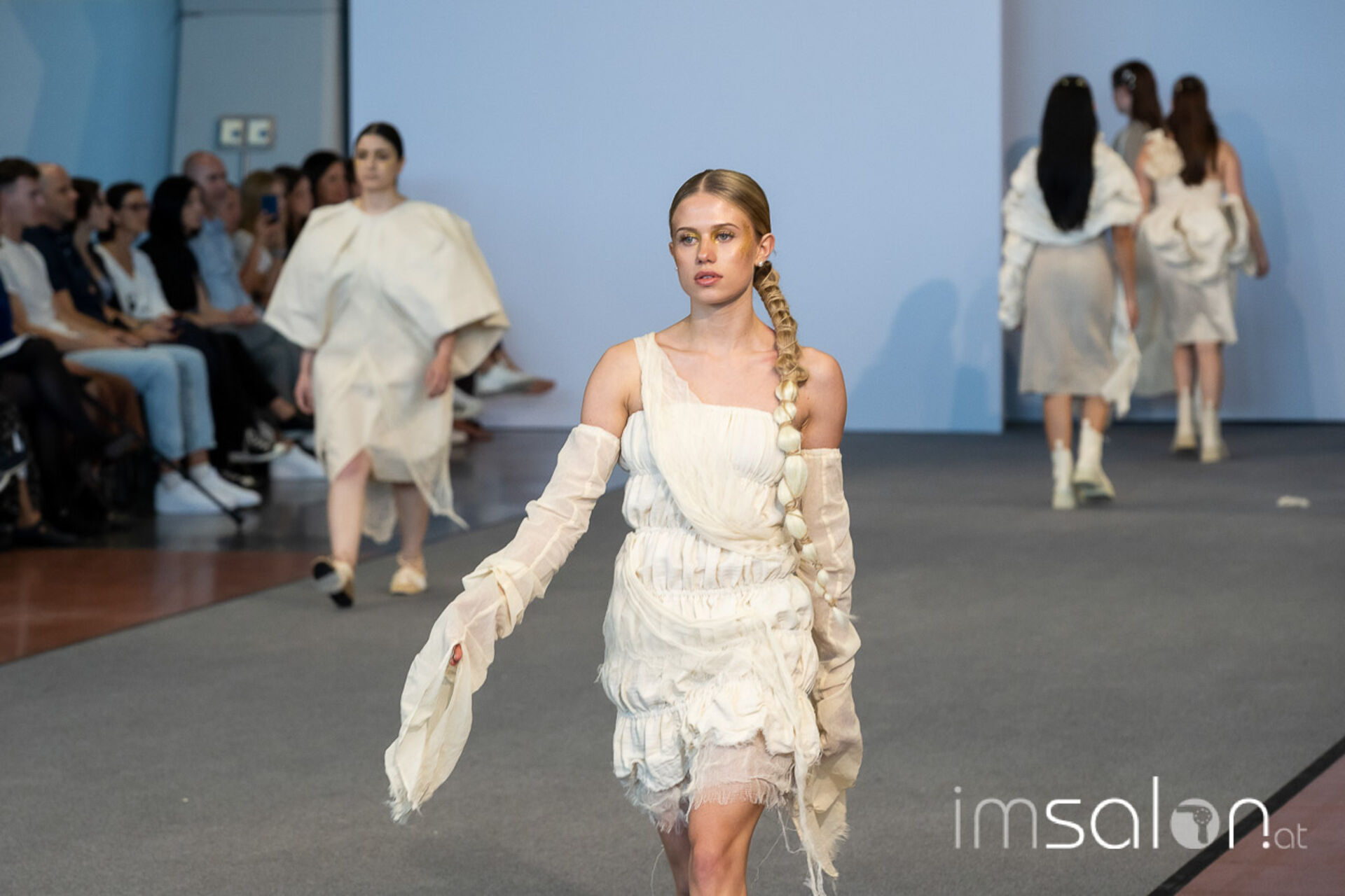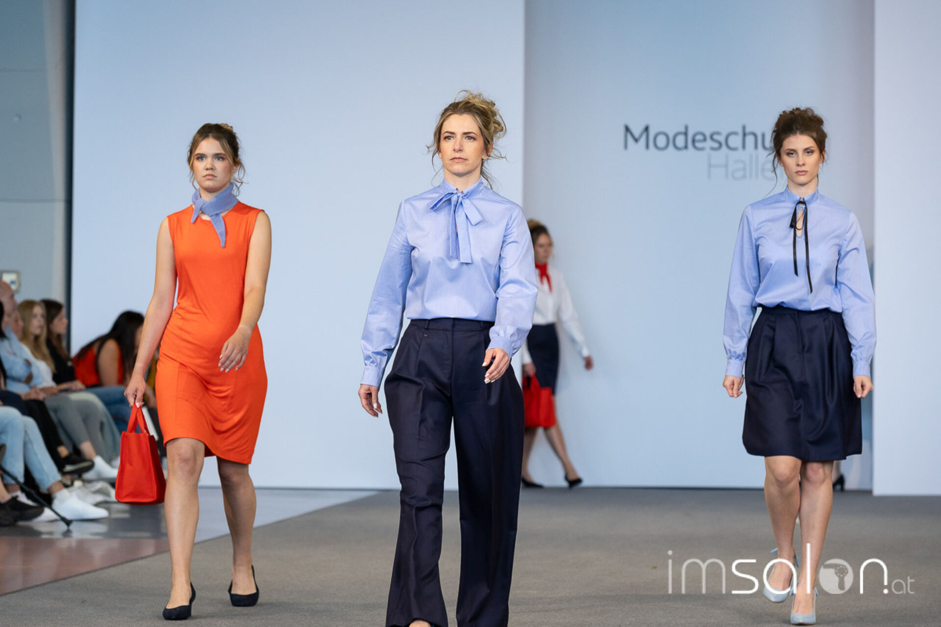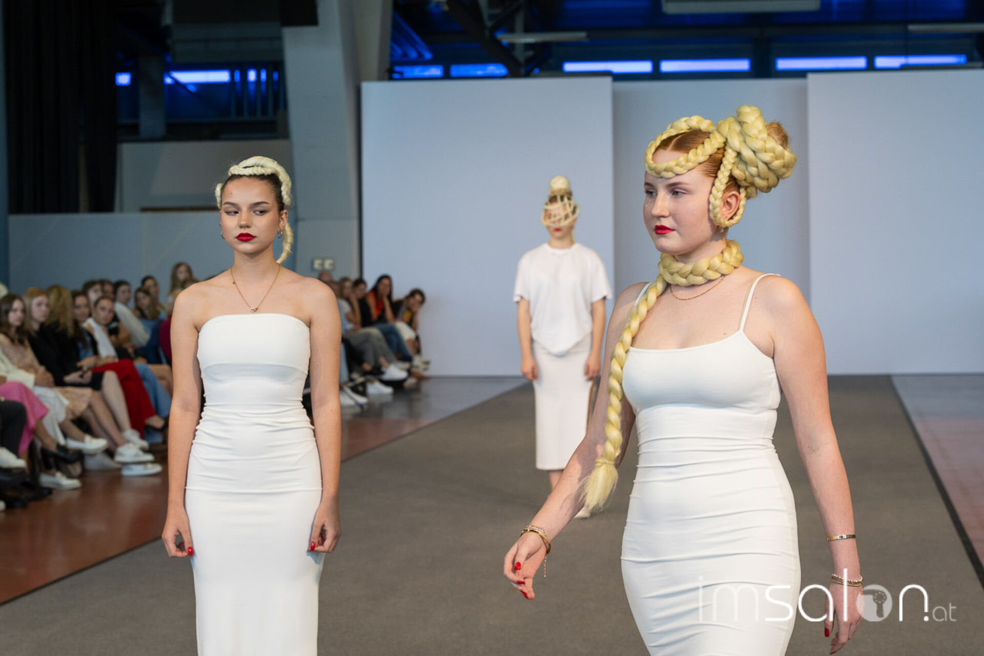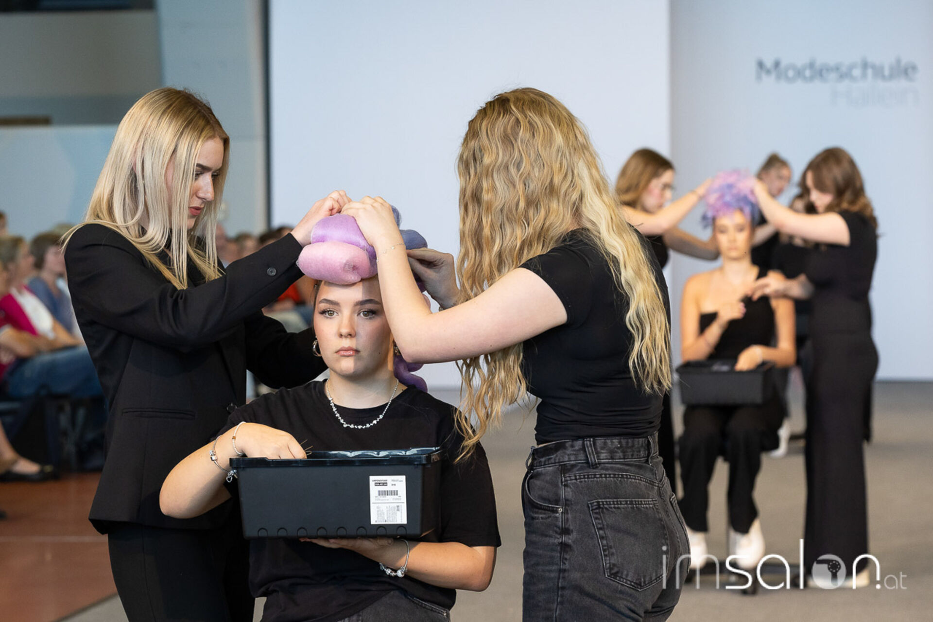 Bei der großen Fashion-Abschluss-Show im Terminal 2 des Salzburger Flughafens präsentierten die Nachwuchsdesignerinnen und -Designer der Modeschule Hallein ihre Kollektionen. Dabei wurden sie von den Schüerinnen und Schülern des Hairstylung, Make-up & Visagisten Zweiges unterstützt, die das gesamte Styling der Modelle von der Frisur bis zum Make-up übernahmen.