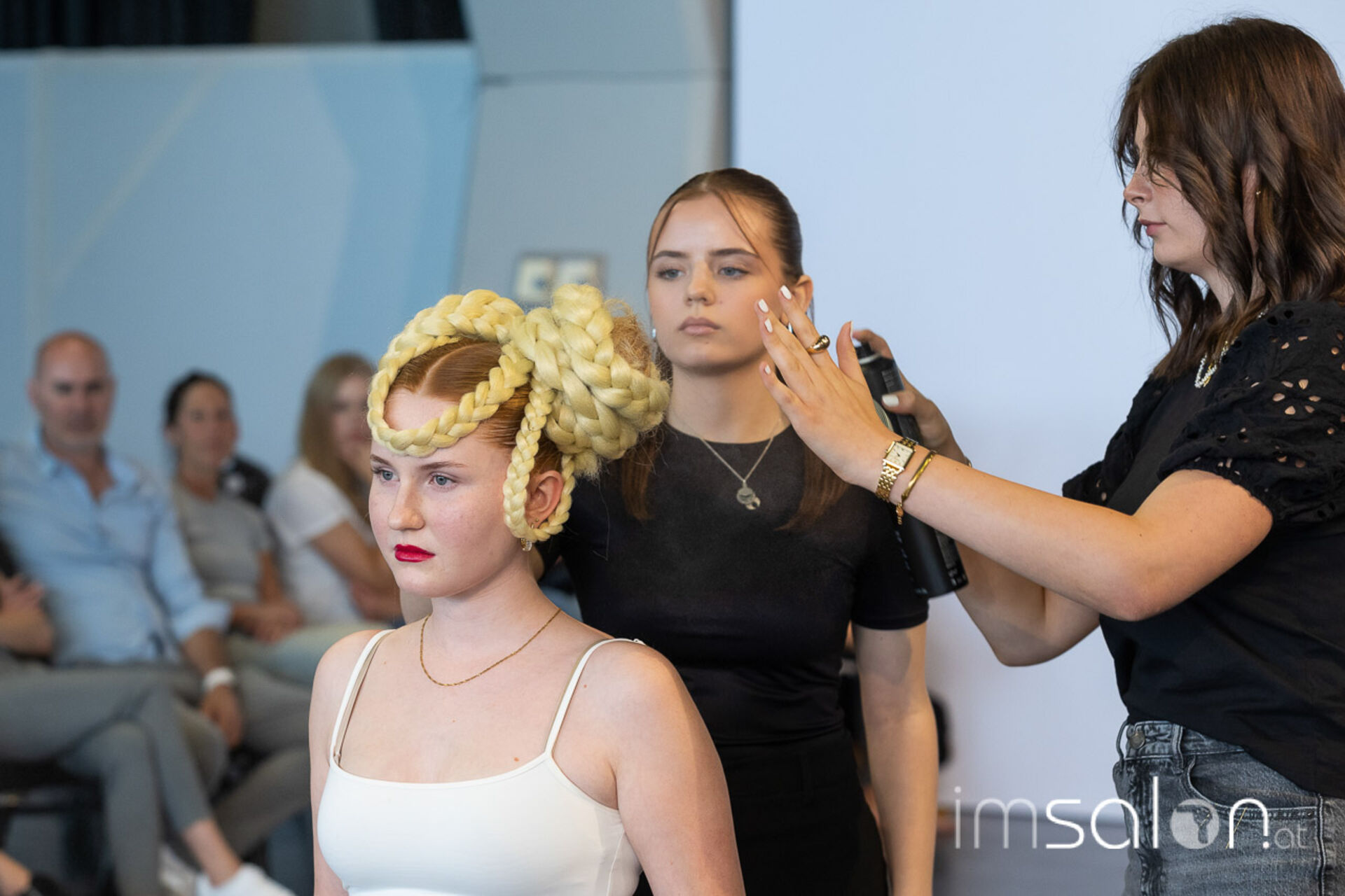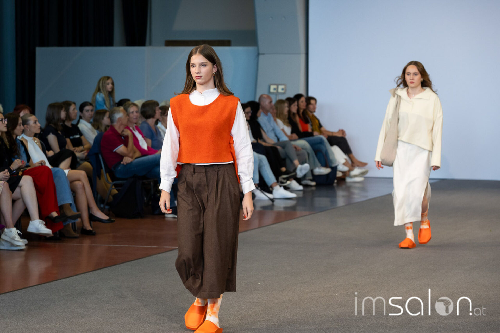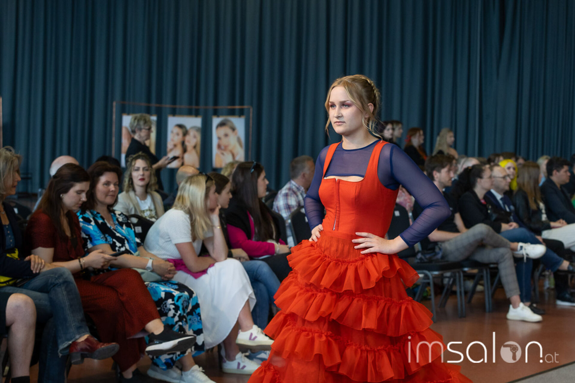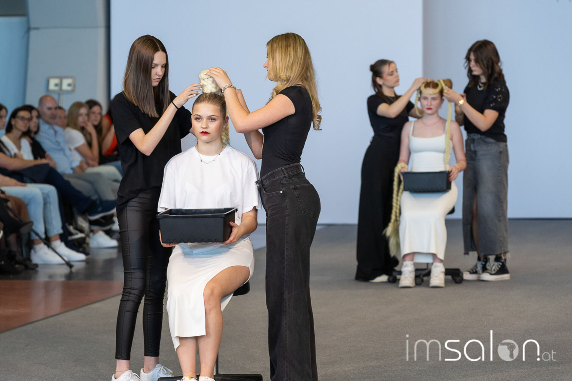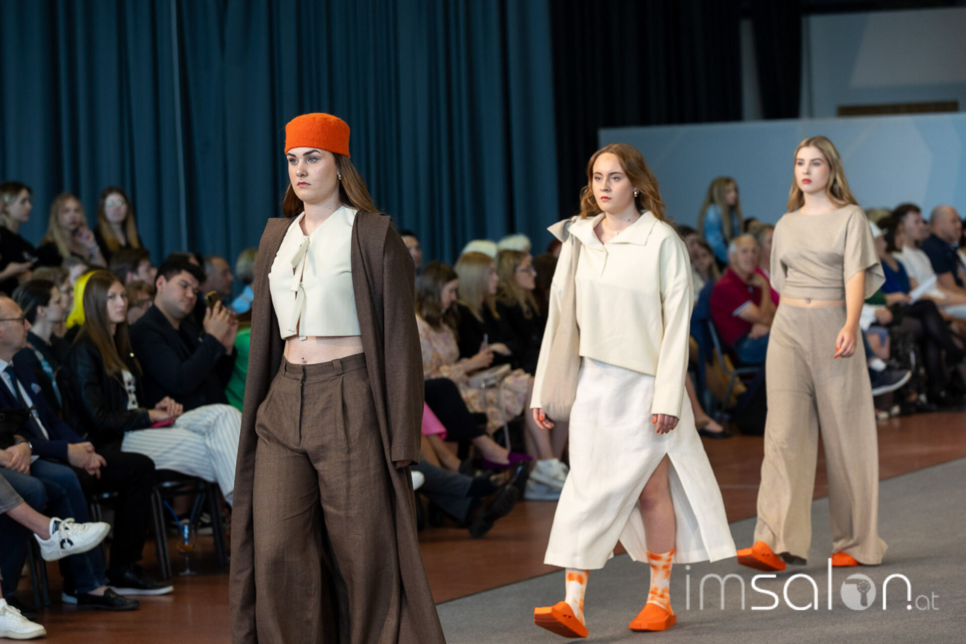 Bei der großen Fashion-Abschluss-Show im Terminal 2 des Salzburger Flughafens präsentierten die Nachwuchsdesignerinnen und -Designer der Modeschule Hallein ihre Kollektionen. Dabei wurden sie von den Schüerinnen und Schülern des Hairstylung, Make-up & Visagisten Zweiges unterstützt, die das gesamte Styling der Modelle von der Frisur bis zum Make-up übernahmen.